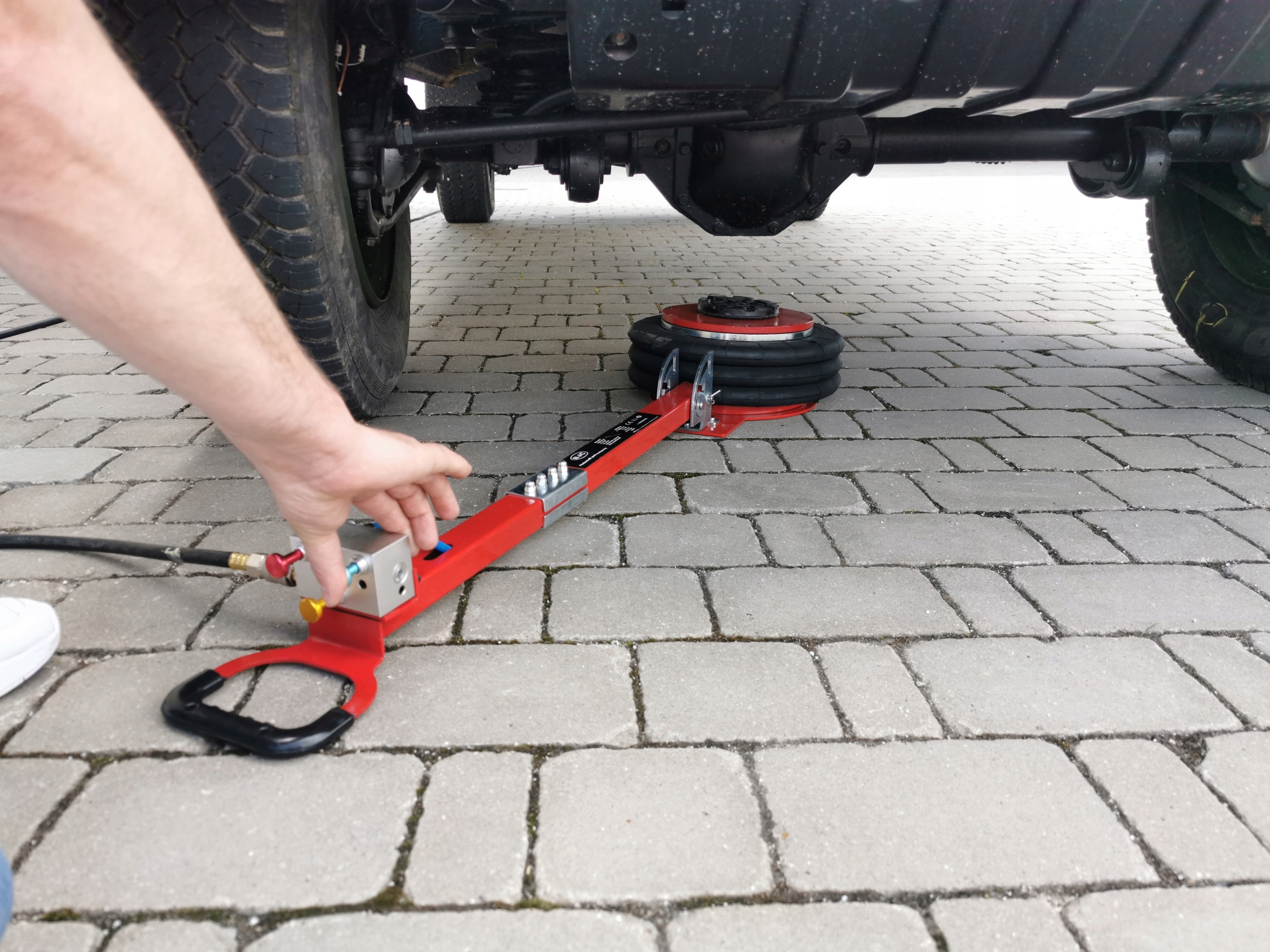 Лифт оснащен вакуумным клапаном, который позволяет выпускать воздух из лифта на минимальную высоту, не оказывая давления на подушку. Благодаря такому решению мы можем выйти из автомобиля, не дёргая и не нажимая на подушку, опасаясь что-то повредить при выдергивании домкрата.