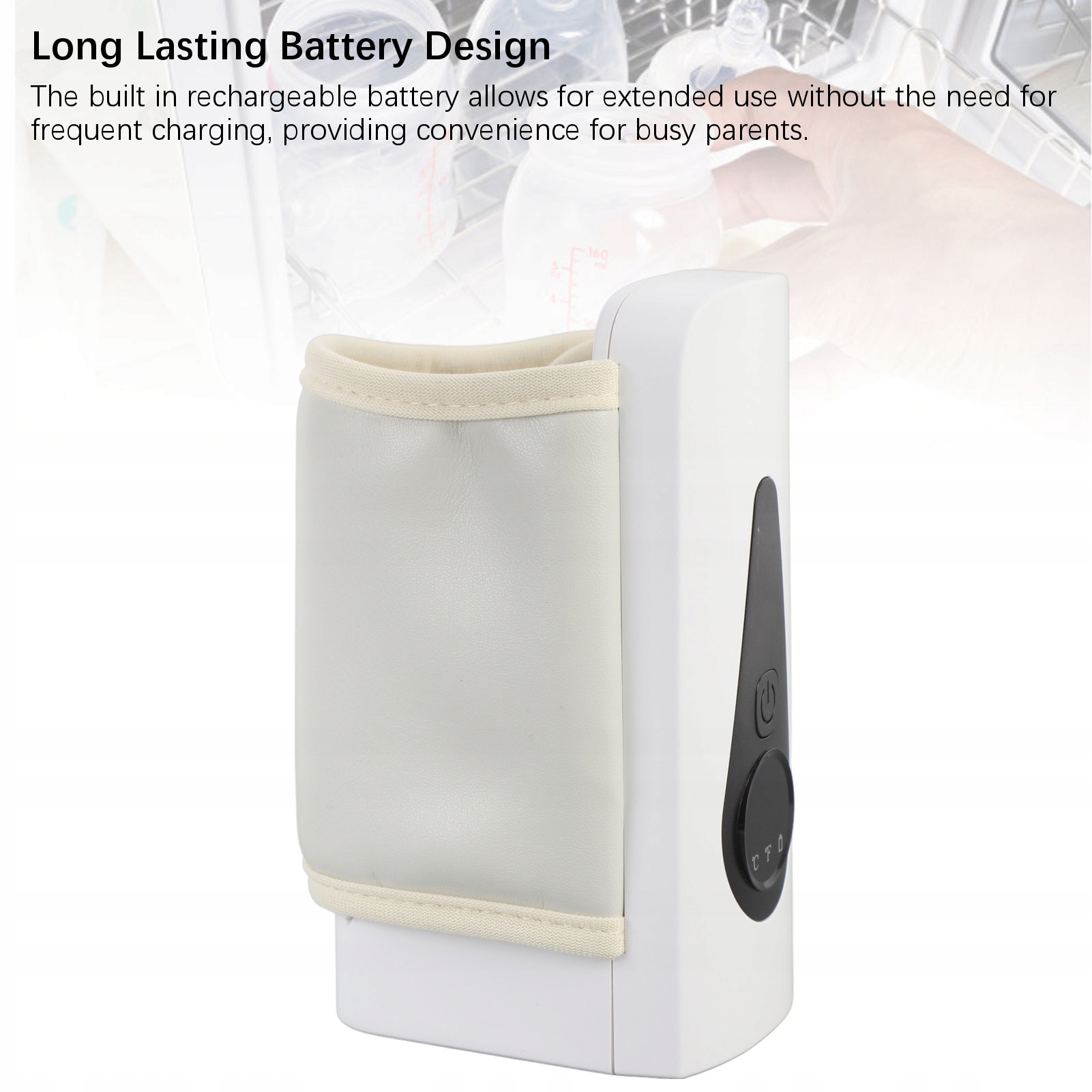1. Эффективная технология зарядки. Благодаря высокоэффективной технологии зарядки этот подогреватель детских бутылочек удобен и портативен, что делает его незаменимым аксессуаром для родителей, находящихся в пути.