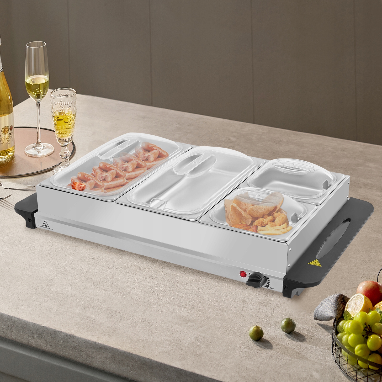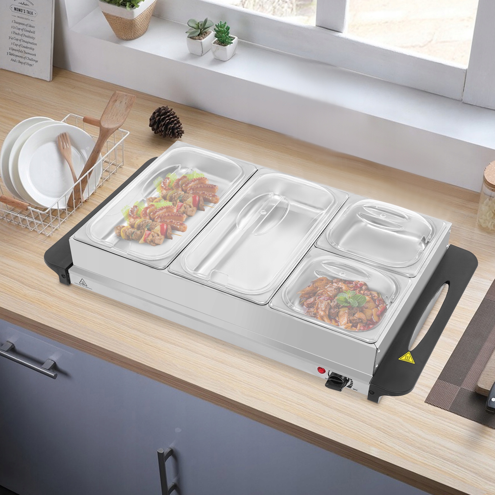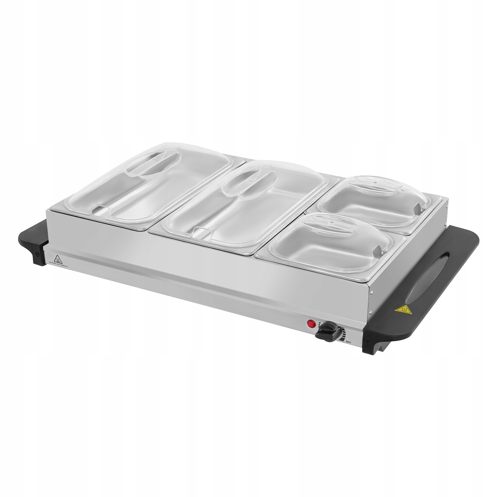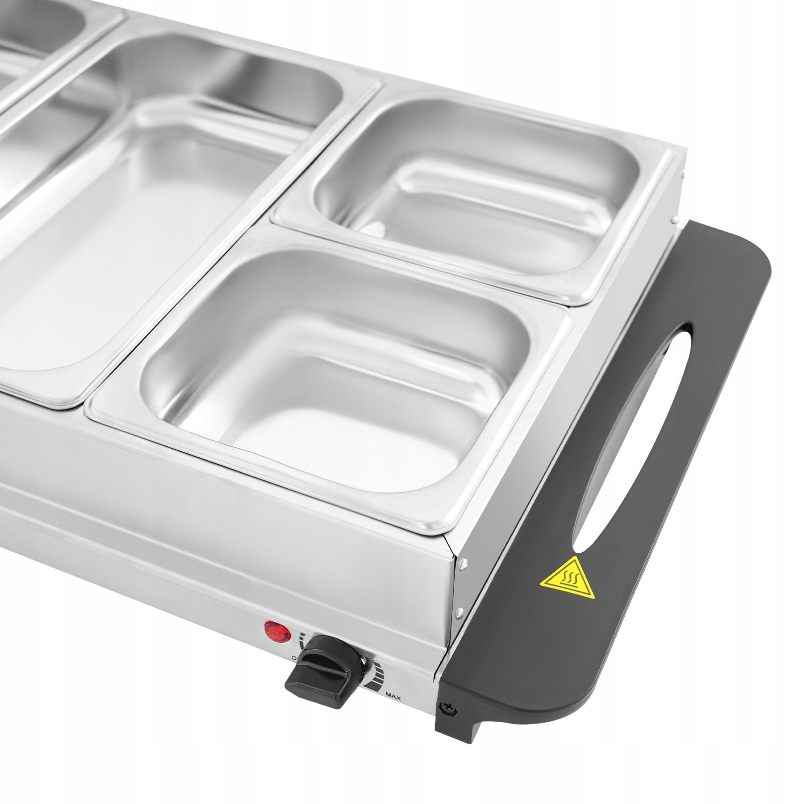 Этот подогреватель для шведского стола сохранит еду теплой и красивой, независимо от того, устраиваете ли вы оживленную семейную встречу или управляете оживленным шведским столом в ресторане. Изготовленный из прочных материалов и спроектированный для простоты использования, он гарантирует, что ваши блюда останутся привлекательными и вкусными от первого гостя до последнего. Практичный партнер на все случаи жизни для любителей вкусной еды!