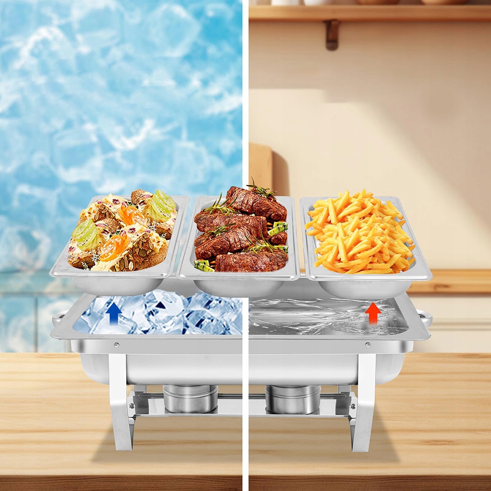 【Прочный материал】 нагреватель изготовлен из нержавеющей стали, которая является долговечной и прочной, коррозионной устойчивой, характеризуется высокой стабильностью, сопротивлением повреждению и дольше. Прочно изготовленный тепловой контейнер обеспечивает хорошую теплостойкость. Это позволяет пользователям поддерживать тепло блюд благодаря высококачественной раме из нержавеющей стали и нагреванию тела. Емкость подноса составляет около 9 литров, и его емкостный дизайн идеально удовлетворит ваши потребности.