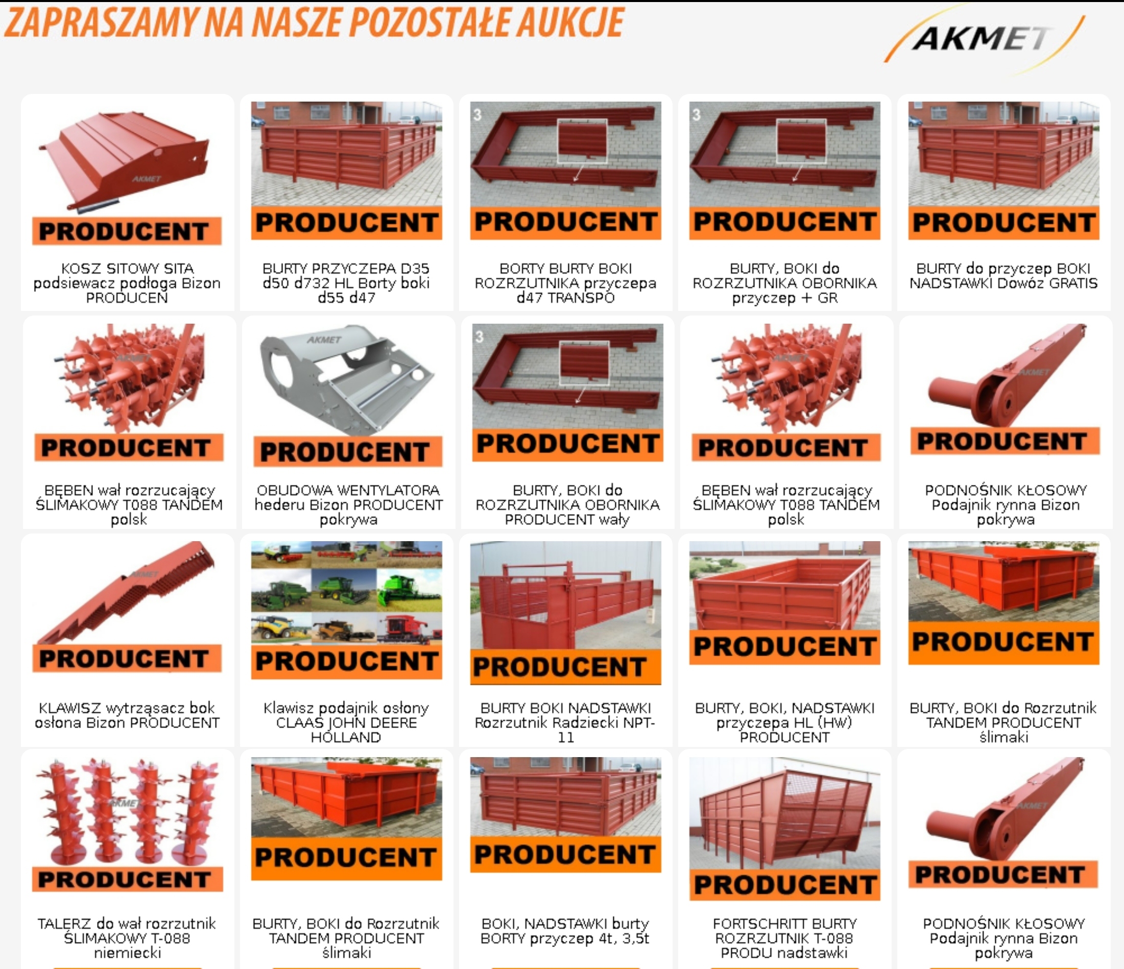 На аукционе на продажу продукт крупнейшего лидера в Польше в производстве гребли для объединения и сторон для сельскохозяйственных трейлеров и разбрасывателей навоза от Akmet