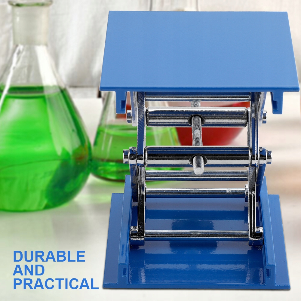 Синяя гальванизированная алюминиевая лабораторная платформа размером 100 х 100 мм, стойка с ножничным домкратом