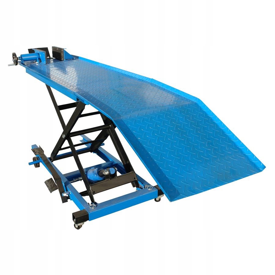 (-> Максимальная нагрузка емкость: 360 кг). Удобное подъем/плавное опускание платформы с педалями (2), безопасное крепление переднего мотоциклетного колеса с подвижным зажимным зажимом (-> Макс. Строительство: основание из четырехугольного трубчатого профиля, платформы с нагрузкой/съемная рампа из профилированного стального листа, ножничного подъема, дорожных колес (-> 2 постоянных/2, ведущих с тормозом). Металлические детали, покрытые порошковым лаком, цвет: RAL 5015. Общая длина платформы с пандусом вторжения/без рампа: 2,200/1,350 мм, внешняя/используемая ширина платформы: 490/460 мм.