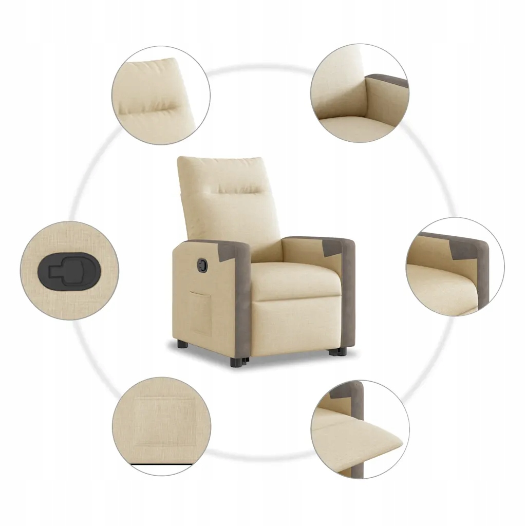 Подъемное кресло с откидной спинкой, кремовое, с тканевой обивкой