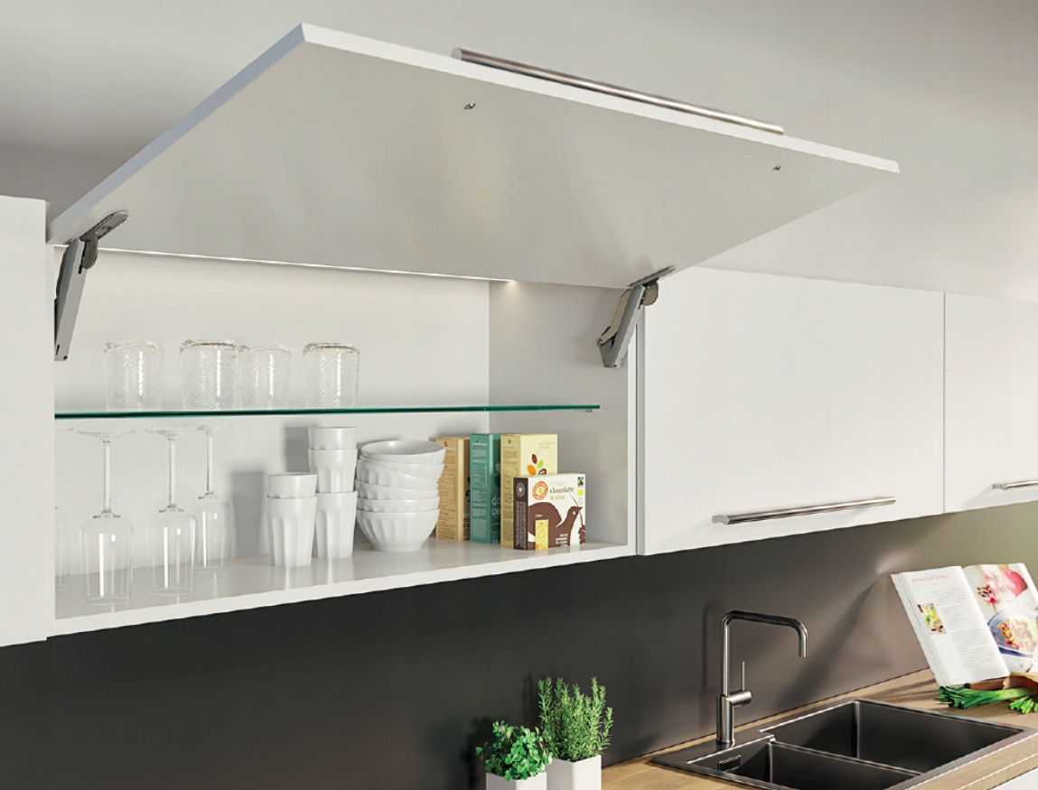 Фронтальный подъемник Free Space 1.11 предназначен для фасадов с мебельными ручками. Этот продукт идеально подходит для деревянных фасадов или фасадов с алюминиевой рамкой шириной мин. 45 мм.