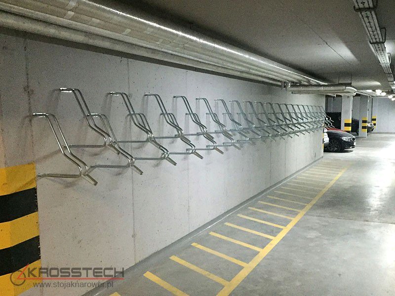 Верха, посвященная развитию больших и небольших велосипедных комнат. Его главное преимущество - отсутствие необходимости поднимать велосипед при парковке. Благодаря независимым парковочным ящикам вы можете персонализировать высоту вешалки до конкретного велосипеда. Затем парковка велосипеда выполняется путем поднятия только переднего колеса и установив его в боксе.