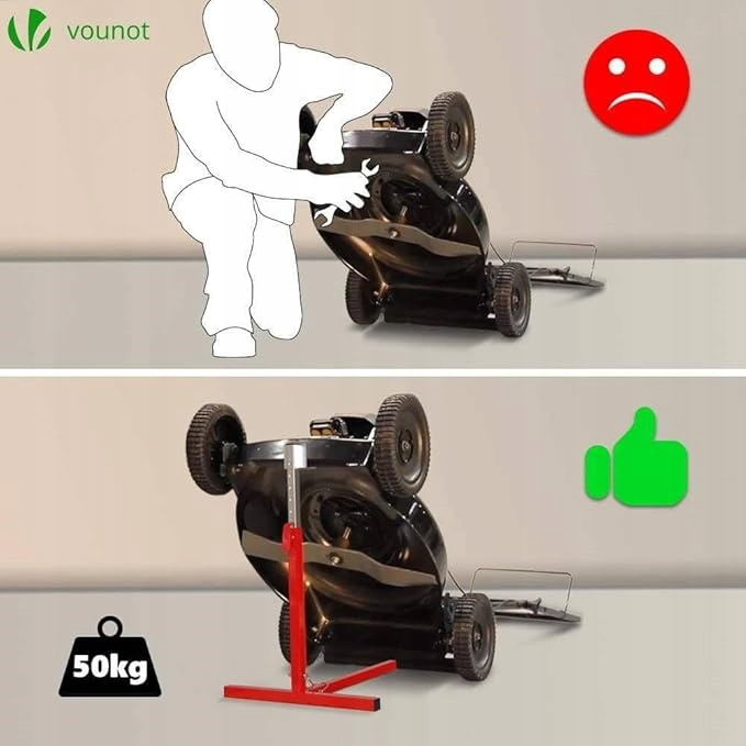 Представляем наш практичный подъемник для газонокосилки VOUNOT, который делает обслуживание и ремонт вашей газонокосилки проще, чем когда-либо прежде. Этот прочный подъемник позволяет поднять газонокосилку на необходимую рабочую высоту, облегчая доступ к предметам, требующим внимания. Благодаря этому инструменту задачи обслуживания становятся быстрее и удобнее.