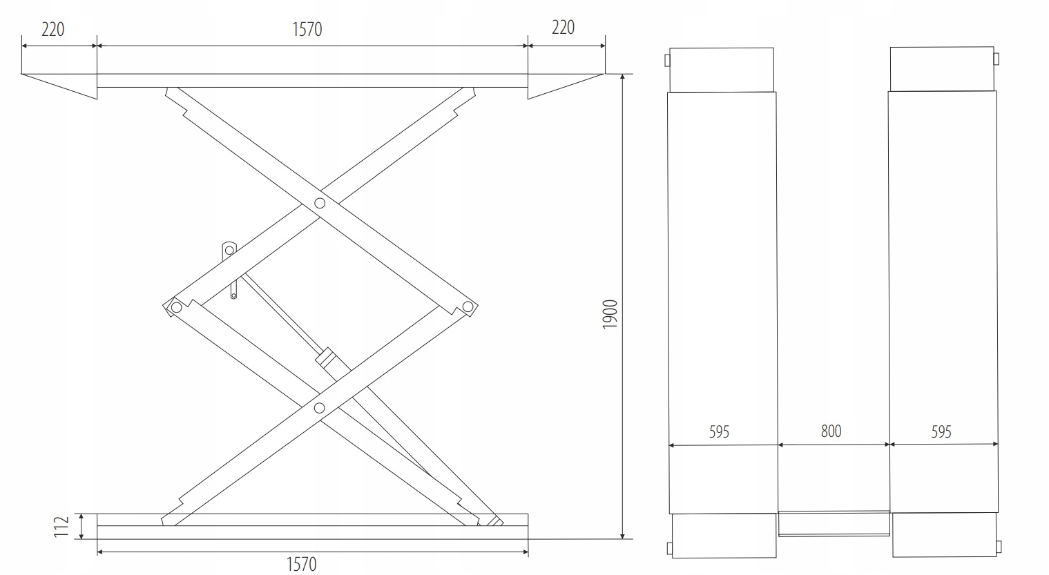 - ножничный подъемник предназначен для установки на полу (высота в сложенном состоянии всего 112 мм)