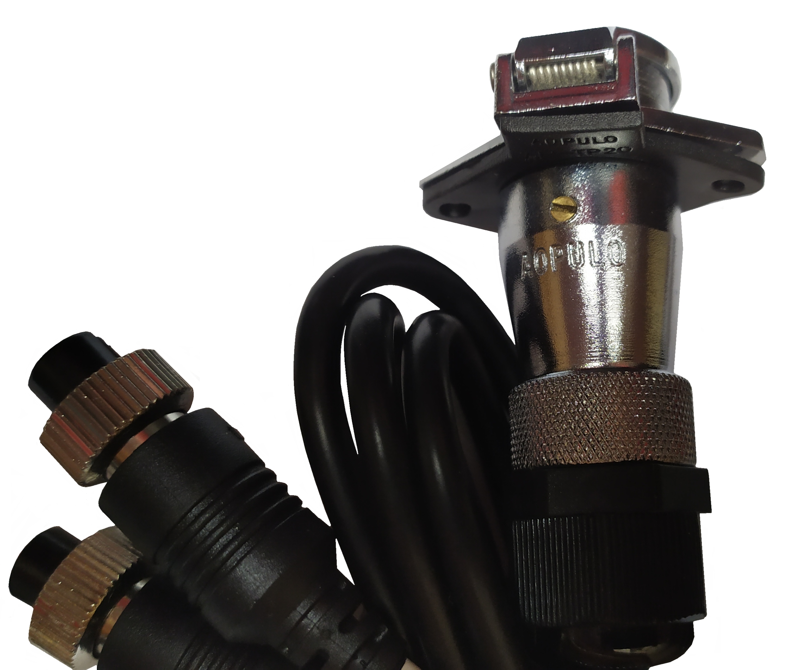 - Два плотно скрученных металлических 5-контактных металлических гнезда с двумя 50-контактными кончиками