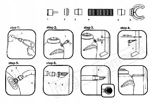 - а шланг для подсоединения желоба к дождевому душу длиной 50 см