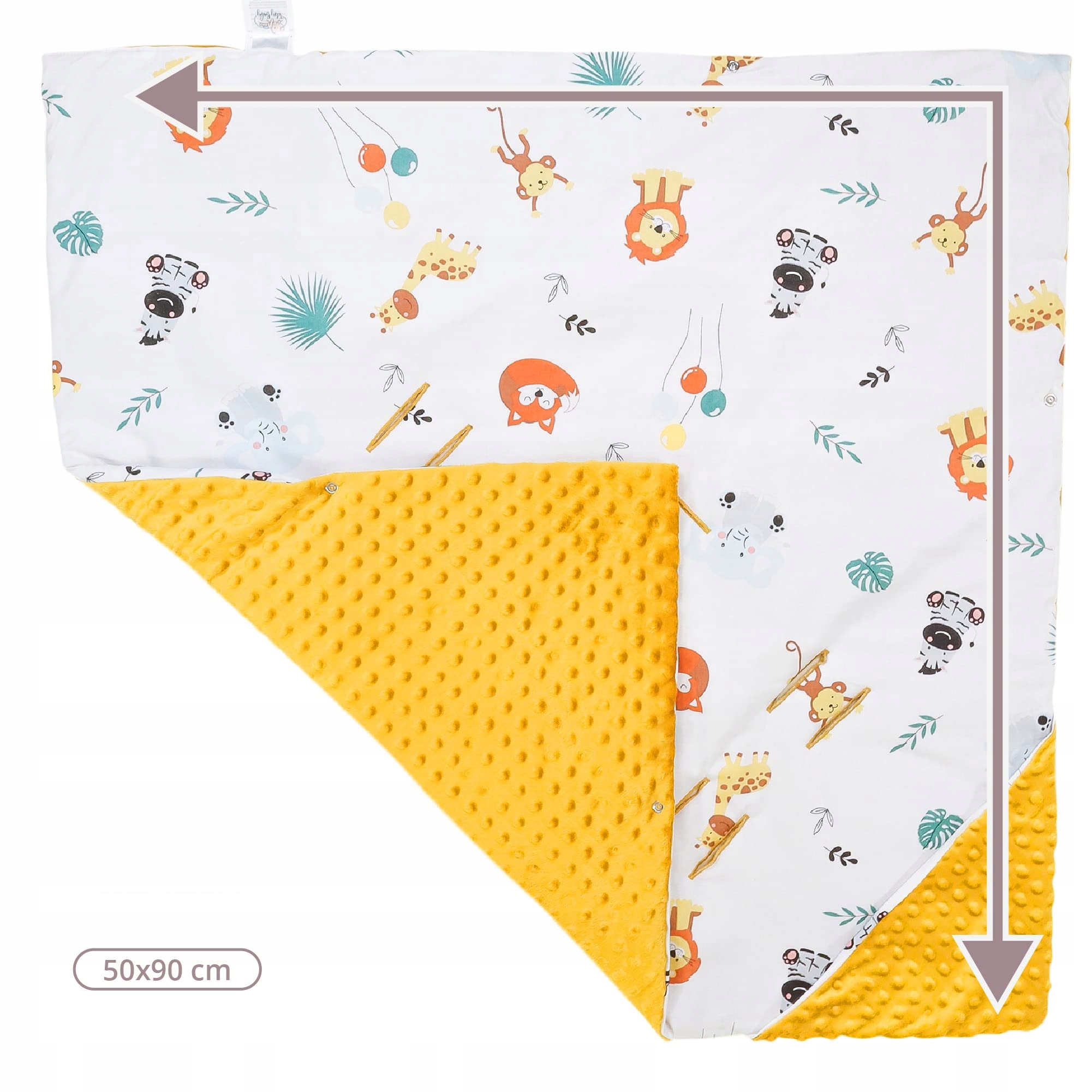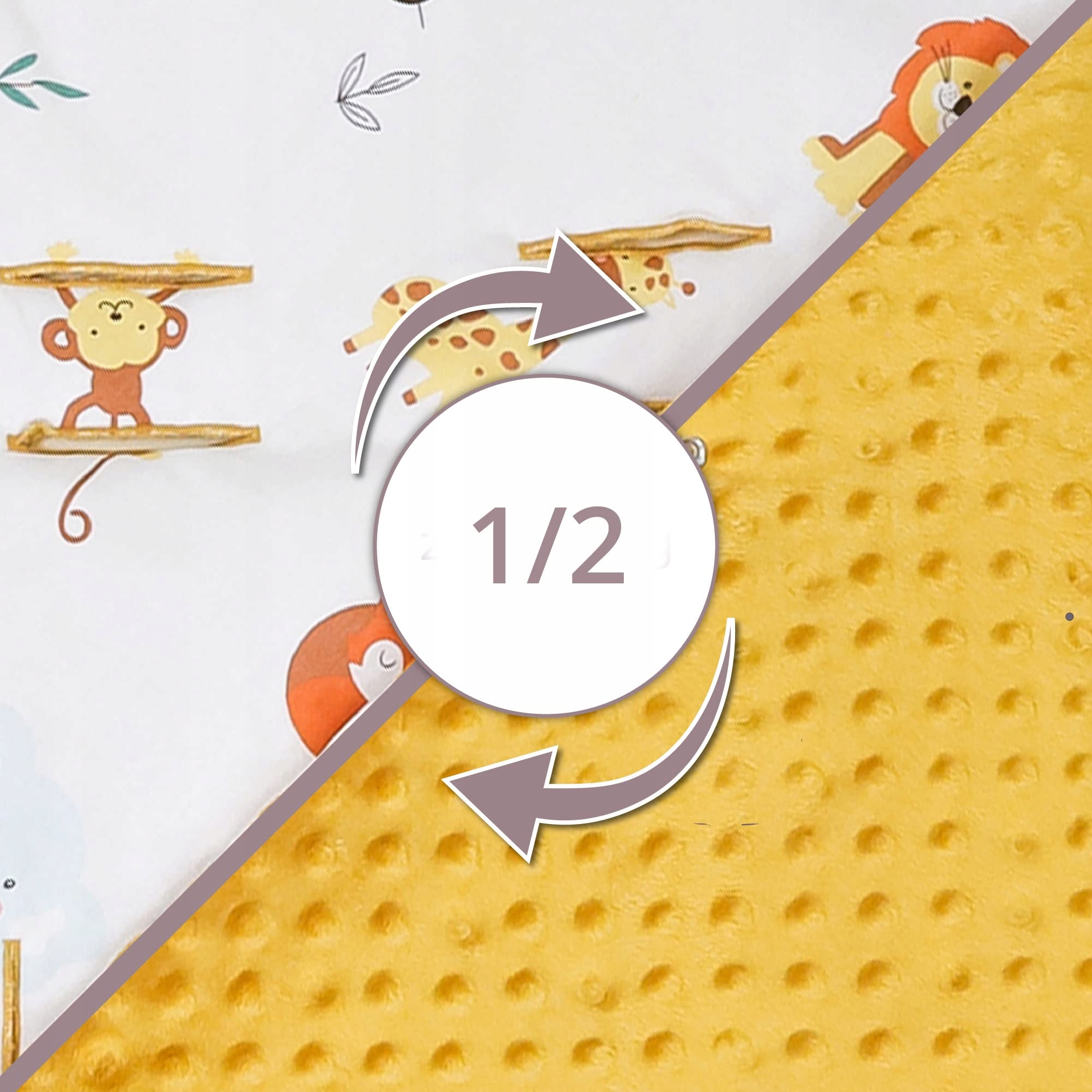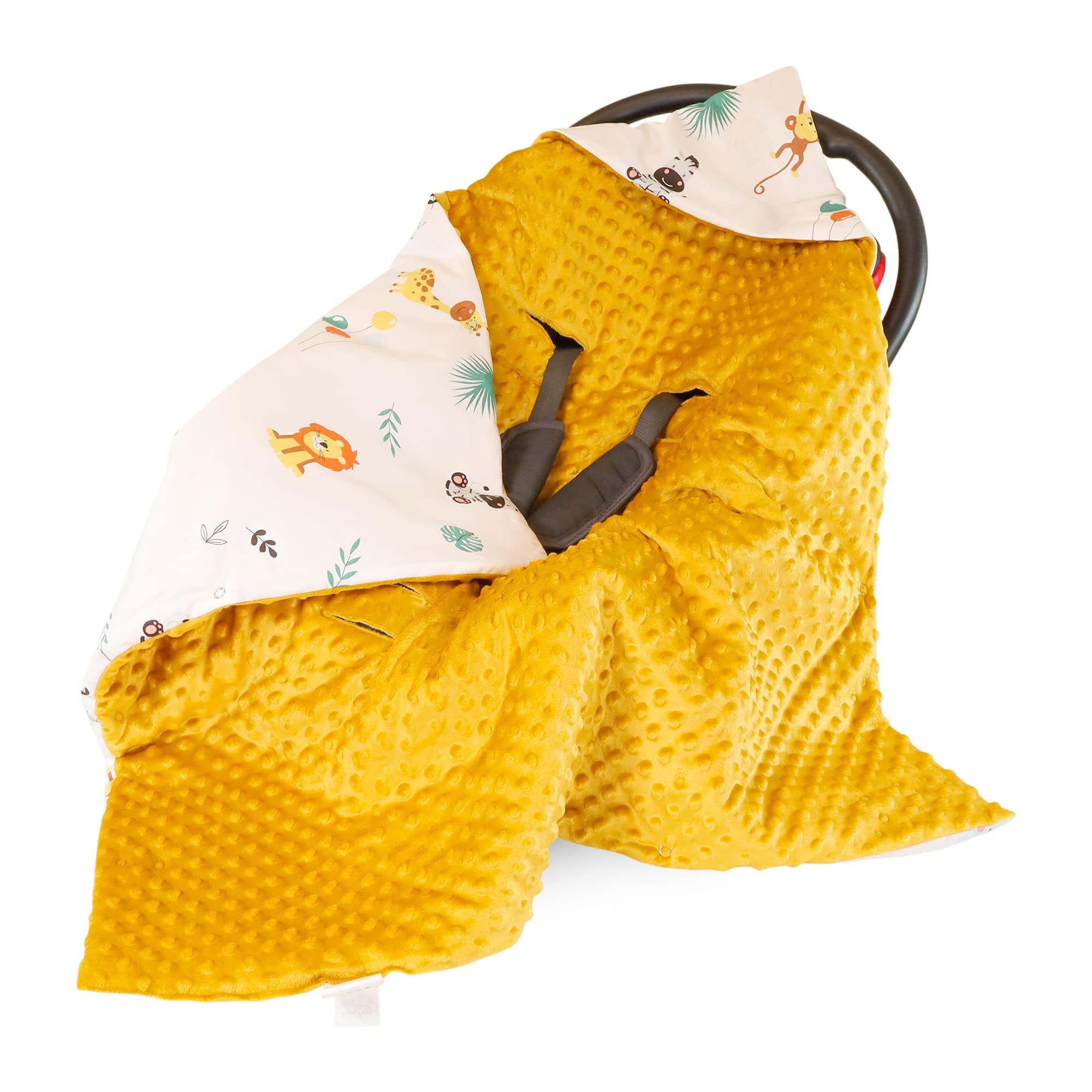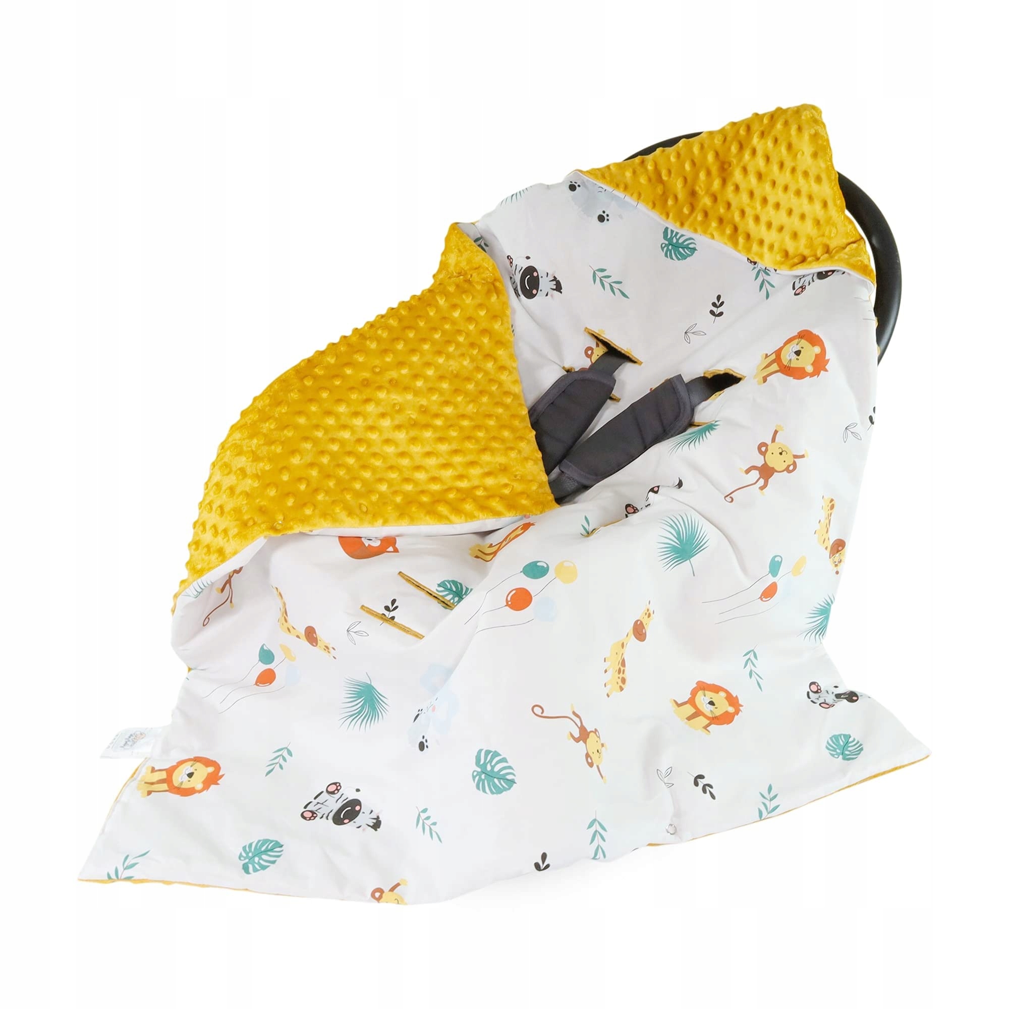 Одеяло, накидка на автокресло, детское багажники с практичными вырезами для ремней безопасности. Используемые ткани обеспечивают комфортное тепло и в то же время правильную циркуляцию воздуха. Универсально подходит для детских переносок и автокресел (90 см х 90 см). Комфортный сон круглый год - одна сторона из мягкого плюша (Минки), тепло, уютно и приятно - идеально зимой! Другая сторона изготовлена из хлопка с яркими принтами животных сафари.