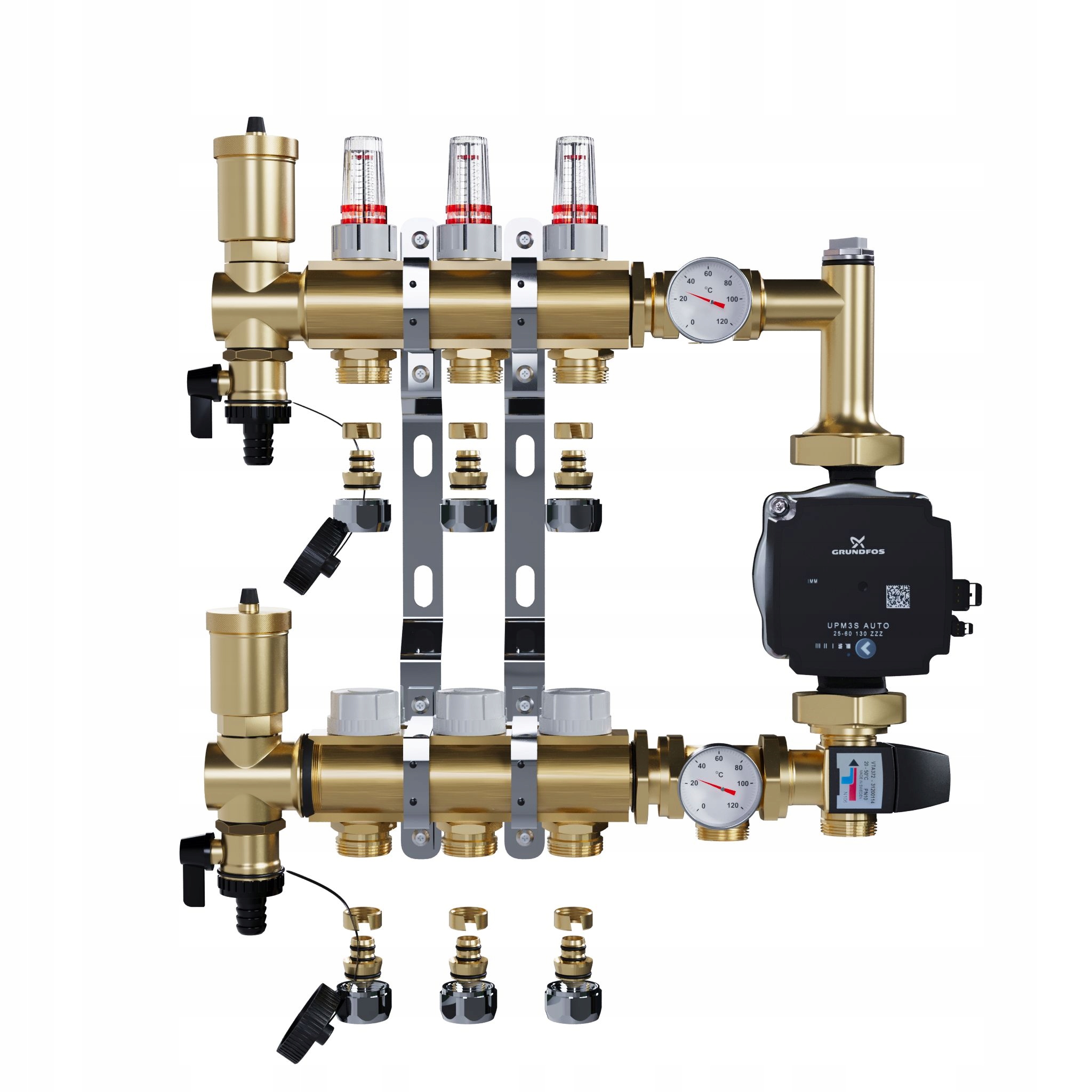 распределитель для нагрева в нижнем полосе с помощью поверхностной коробки + фитинги Pex и отдачи от насосов Grundfos