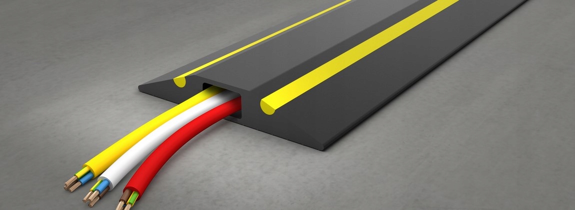 Универсальная крышка, используемая для защиты незакрепленных кабелей в помещениях, где движутся люди и тележки. Чехол позволяет снизить затраты, защищая кабели от возможных повреждений (переломов, смятий). Кроме того, коврик снижает риск случайного спотыкания.