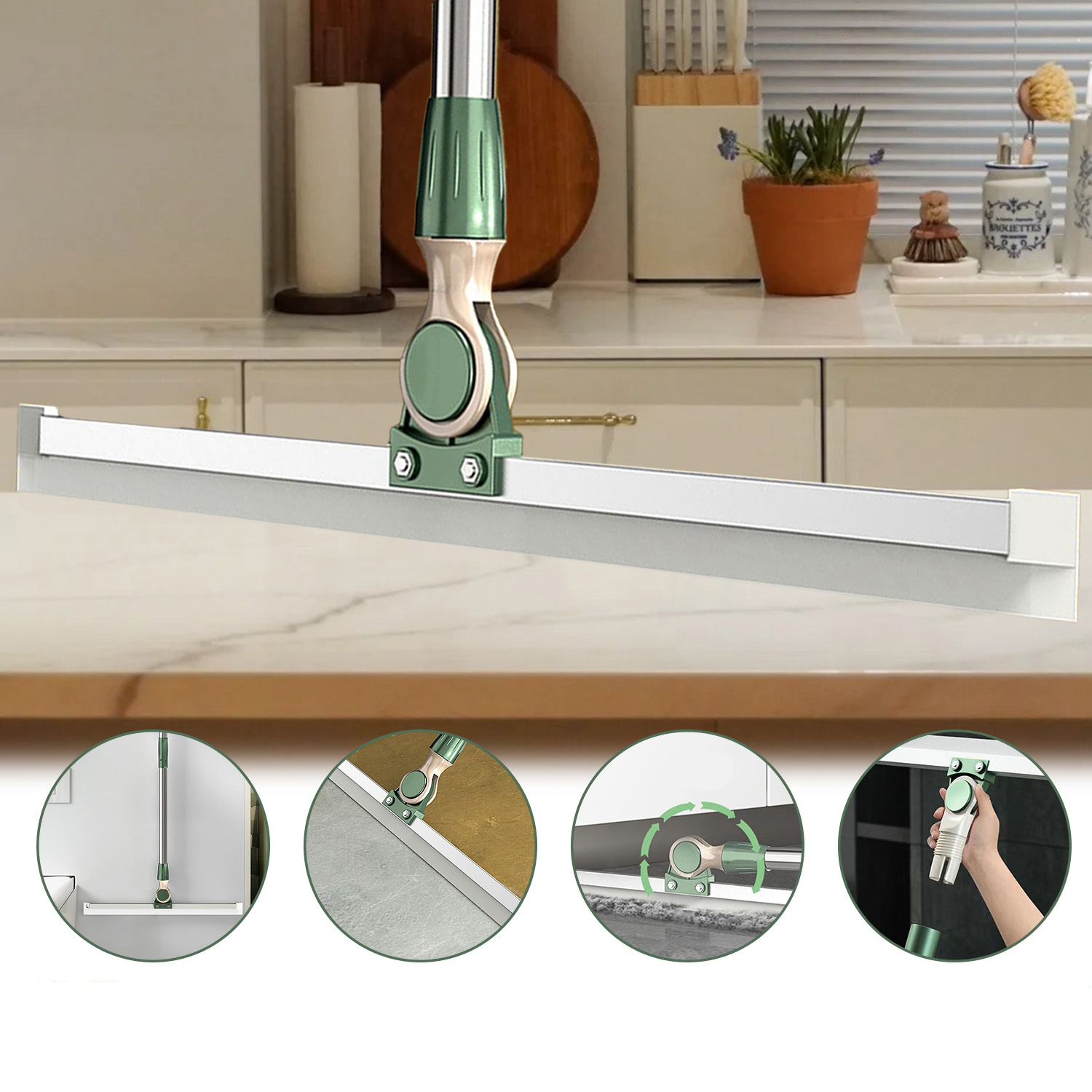 Идеально подходит для удаления пятен воды: большой 52-сантиметровый Welt удаляет большие места воды на одном ударе, повышая эффективность очистки. Вершины эффективно удаляют места для воды, грязь и волосы и могут использоваться в различных местах, таких как гостиная, кухня, ванная комната, окна и бассейн.