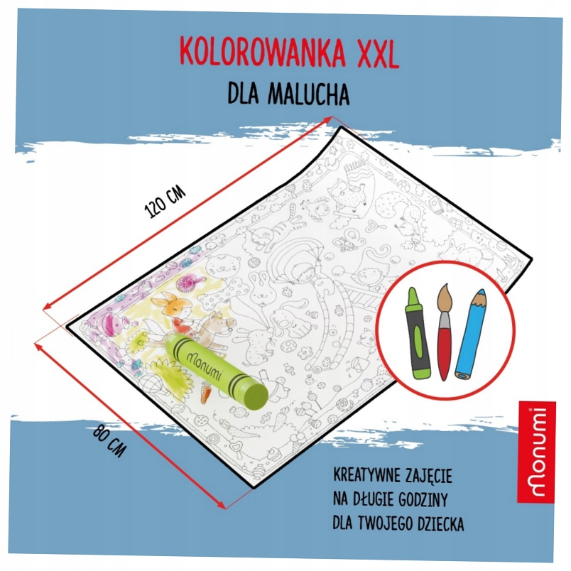 Откройте для себя мир огромного веселья с нашими книжками-раскрасками XXL для детей! Наши книжки-раскраски — идеальный выбор для маленьких художников, которые любят творить на больших поверхностях. Приготовьтесь к часам творческого веселья, улучшения моторики и выражения творческих страстей. Основные характеристики: Размеры XXL: размеры наших книжек-раскрасок составляют 120 x 80 см, что дает достаточно места для рисования и рисования. Идеально подходит для детей, которые любят раскраски большого формата. Универсальное использование: наши книжки-раскраски разработаны для различных техник рисования и совместимы с маркерами, мелками и красками. Предоставьте ребенку свободу выбора и позвольте ему экспериментировать с разными средствами самовыражения. Обучающие и развивающие: эти раскраски не только доставляют удовольствие, но и способствуют развитию мелкой моторики, зрительно-моторной координации и творческих способностей. Это отличный способ заниматься образовательной деятельностью дома. Для детей раскрашивание может стать способом научиться распознавать формы, цвета и развивать графические навыки. Высококачественный материал: наши книжки-раскраски изготовлены из прочного и удобного для детей материала, устойчивы к разрывам и легко чистятся, что обеспечивает длительный срок службы. Идеальный подарок: вы ищете креативный подарок для ребенка? Наши раскраски XXL — идеальный выбор для дней рождения, праздников или в качестве награды. Безопасно для детей. Наши книжки-раскраски, проверенные и безопасные для детей, не содержат вредных веществ, что делает их безопасным выбором для самых маленьких. Мы предлагаем гигантскую поверхность для рисования и рисования, которая стимулирует детское воображение и творчество. Наши раскраски XXL идеально подходят для использования дома, в детском саду или школе, поощряя групповые игры. Благодаря легкому сворачиванию изделия книжку-раскраску легко хранить и транспортировать, что делает ее идеальным решением как для домашнего, так и для школьного использования. Поощряйте ребенка к творческой игре. Выбирайте наши раскраски XXL для детей!