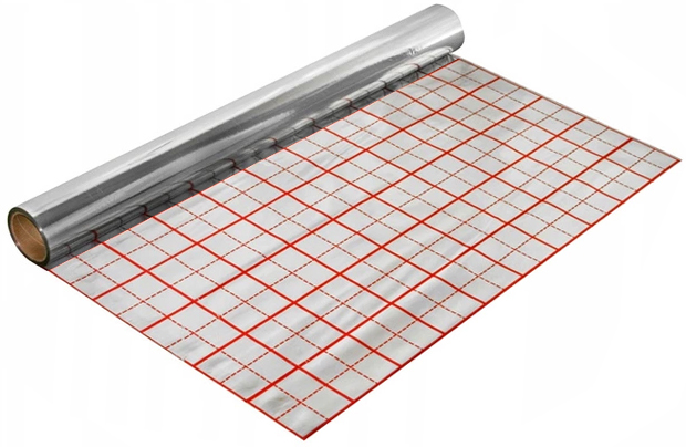 Пленка для теплого пола представляет собой ламинат из полиэтилена и металлизированной полипропиленовой фольги, изготовленный по современной технологии, с межслойной печатью в виде сплошных и ломаных линий, создающих сетку 10 см, облегчающую монтаж отопительной установки.