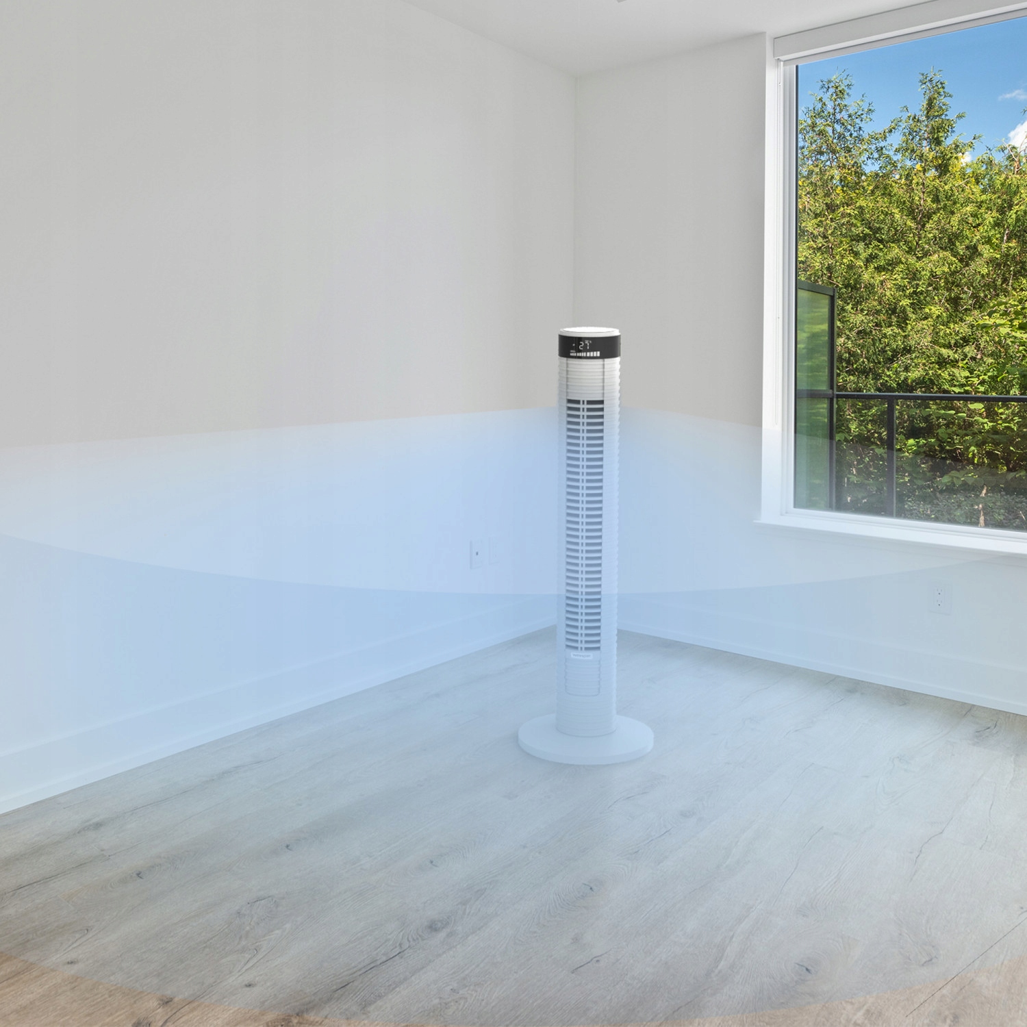 В отличие от обычных вентиляторов, колонный вентилятор создает поток воздуха в нескольких точках. Таким образом, он максимизирует свою эффективность за счет непрерывной работы нескольких роторов.