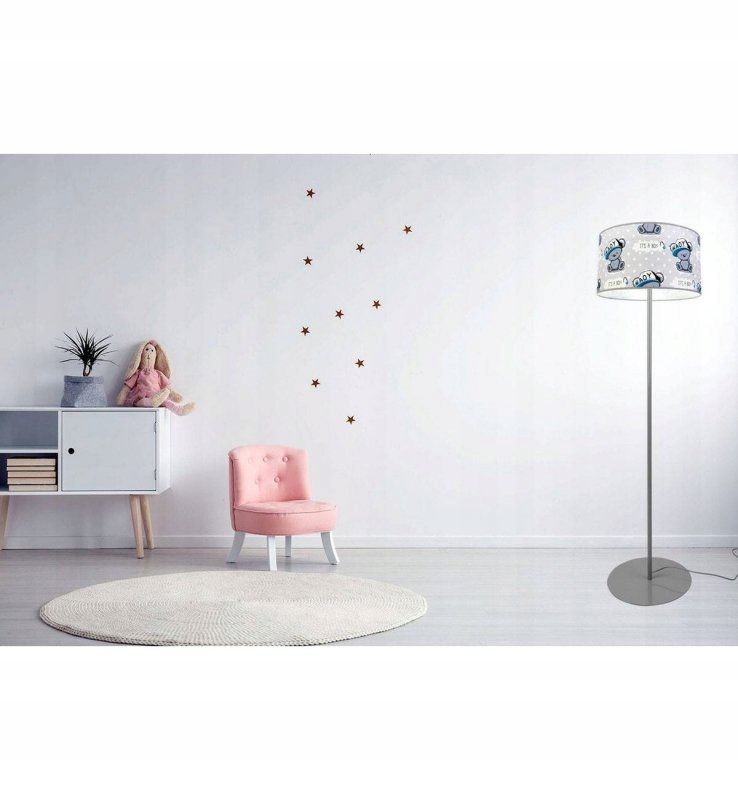 LAMPA NOCNA PODŁOGOWA STOJĄCA POKÓJ DZIECKA LED ABAŻUR MISIU SZARA