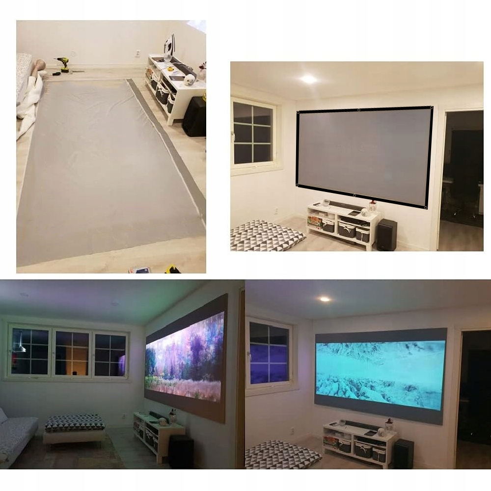 Экран проектора поможет вам. Этот экран проектора обеспечивает превосходное качество изображения независимо от ваших потребностей. Благодаря углу обзора вы можете сидеть где угодно и наслаждаться потрясающим киновечером с семьей и друзьями. В комплект входят ремни управления и крючки для крепления на стену! Настройка чрезвычайно проста.