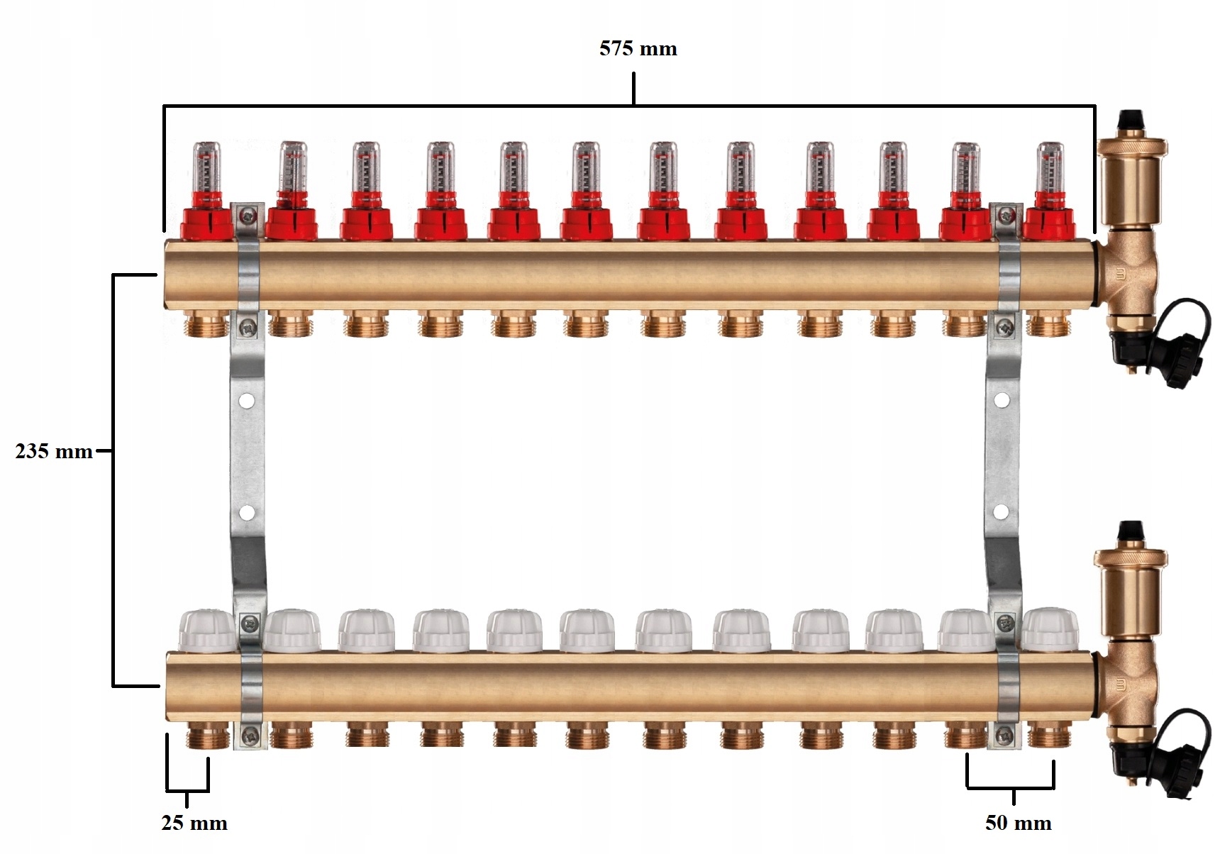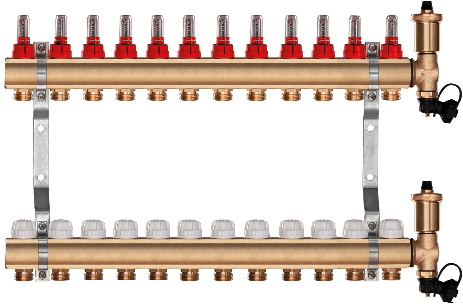 Напольный распределитель из латуни с венткомплектом на 12 контуров