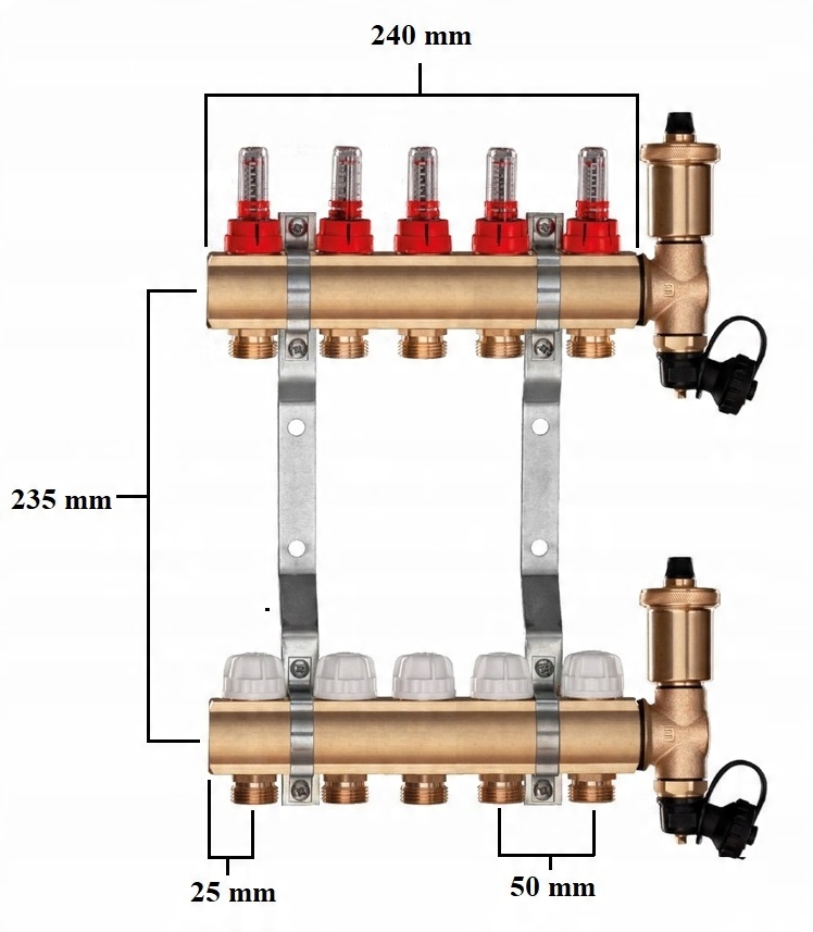 Местный напольный коллектор с набором вентиляции для 5 цепей