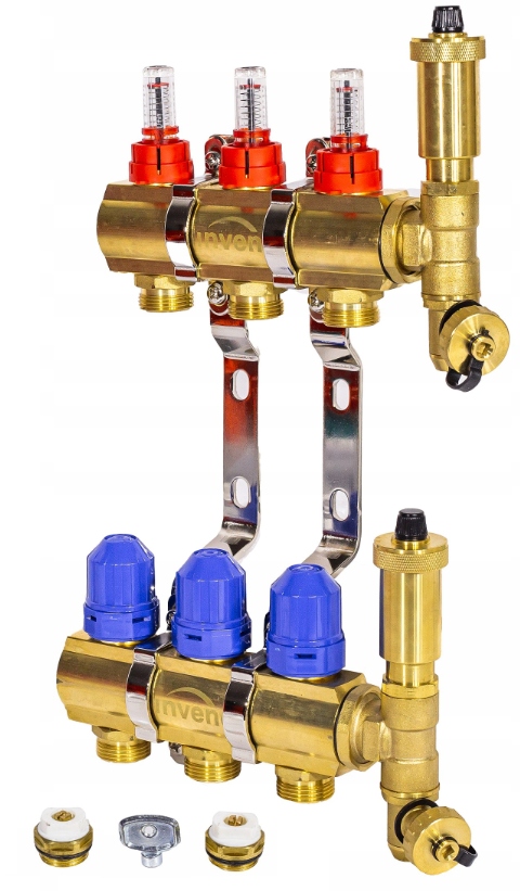 ПІДЛОГОВИЙ РОЗПОДІЛЬНИК ТЕПЛОЇ ПІДЛОГИ, 3 СЕКЦІЇ, ЛАТУНЬ