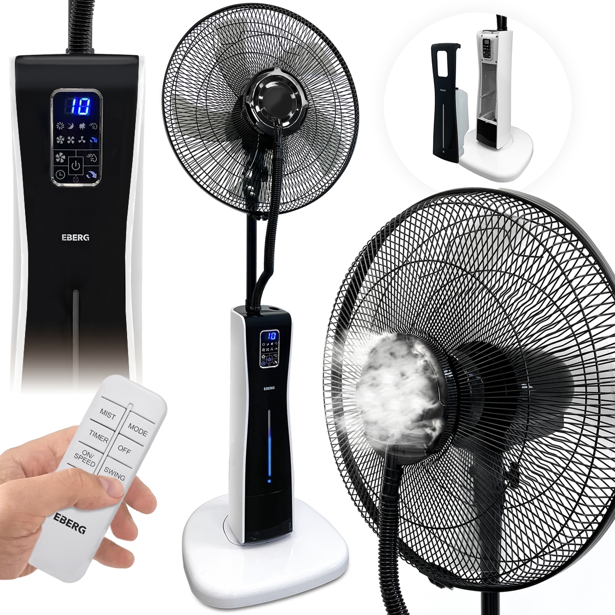 EBERG MOS — современный вентилятор, оснащенный уникальной системой охлаждения, использующей легкий ветерок. Туман, распыляемый перед вентилятором, помогает снизить температуру выдуваемого воздуха, обеспечивая ощущение естественных прохладных порывов ветра с эффектом бриза.