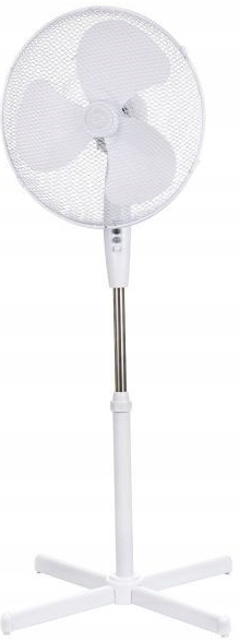 Напольный вентилятор белого цвета диаметром 40 см, в комплекте пульт дистанционного управления. Тип защитной сетки: линейная, три скорости воздушного потока, имеет функцию вращения и регулируемый угол наклона. Мощность двигателя: 50 Вт. Высота веера регулируется в диапазоне: 111-128 см.
