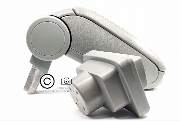 - Подлокотник выполнен из: прочного, толстого пластика, а кронштейн крепления, а также все шестеренки и защелки изготовлены из металла.