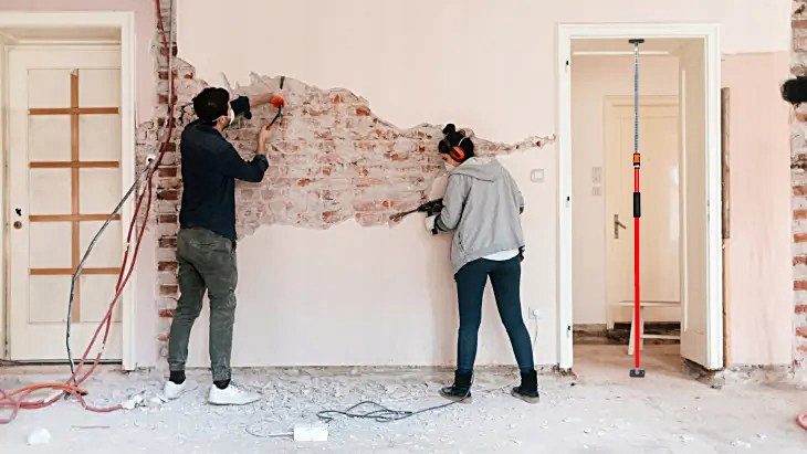 Телескопические опоры, предназначенные для поддержки элементов во время монтажных работ, напр. установка гипсокартона на потолки или стены.