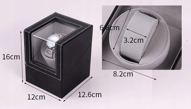 ROTOMAT обтянут экологической кожей. Она отделана белыми нитками. Он работает очень тихо. Подушка, на которой размещаются часы, подойдет к любой модели часов.