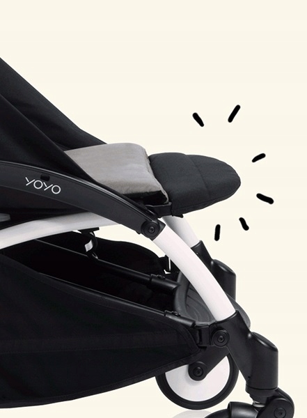 Новая подставка для ног YOYO делает коляску еще более комфортной. Его можно легко прикрепить к раме и установить в различных положениях. Мягкая обивка подставки для ног YOYO обеспечивает высокий уровень комфорта и крепкий ночной сон. Новая подставка для ног совместима с YOYO и YOYO +.