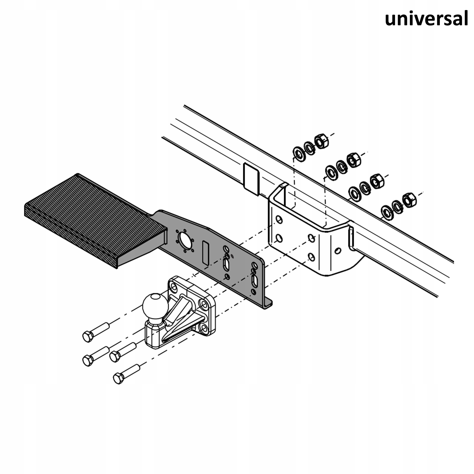 Подножка фаркопа (слева) подходит для всех автомобилей, оборудованных фаркопом с фланцевой шаровой опорой на 2 болта с расстоянием между отверстиями 90 мм и шаровой опорой на 4 болта с расстоянием между отверстиями 83 x 56 мм.