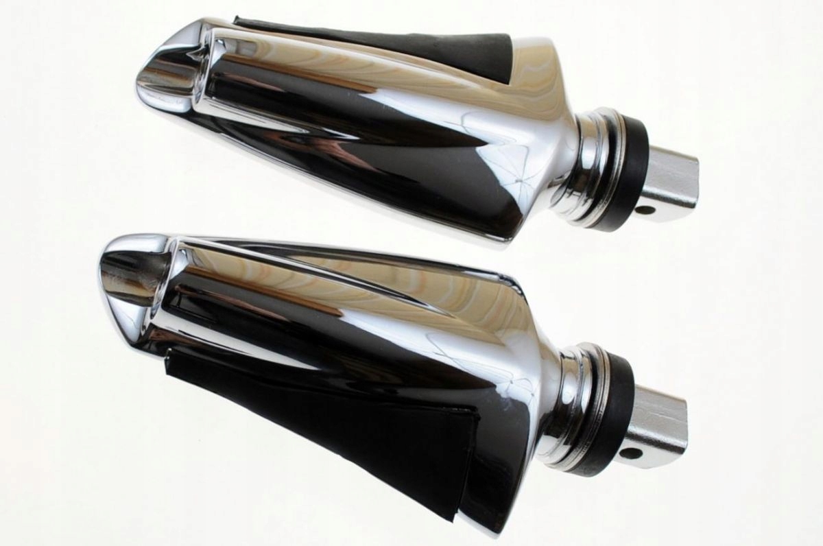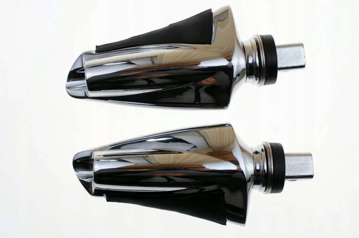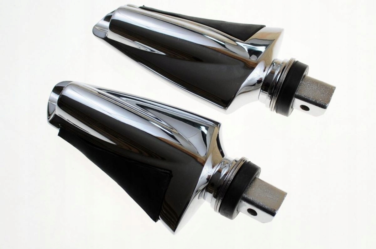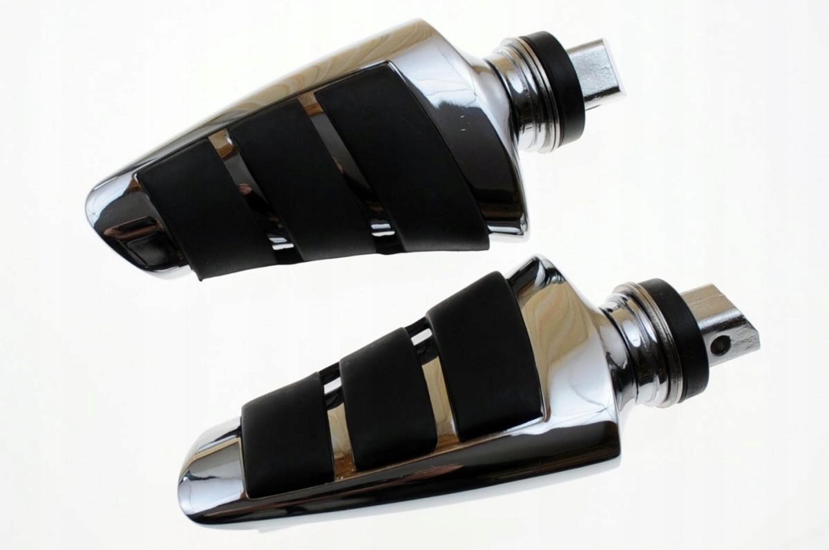 - Комплект серебристый с черными выпуклыми элементами, предотвращающими соскальзывание ноги с подножки.