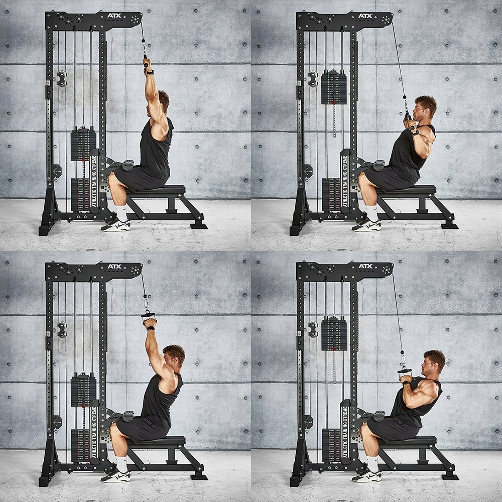 ATX® Trinity Tower — это идеальная станция для тренировки спины, обеспечивающая три разных направления тяги, отличную эргономику и максимальную свободу движений. Благодаря весовой стеке 135 кг и возможности добавления полос сопротивления Roller-Band-Pegs устройство обеспечивает невероятную динамику и интенсивность тренировок.