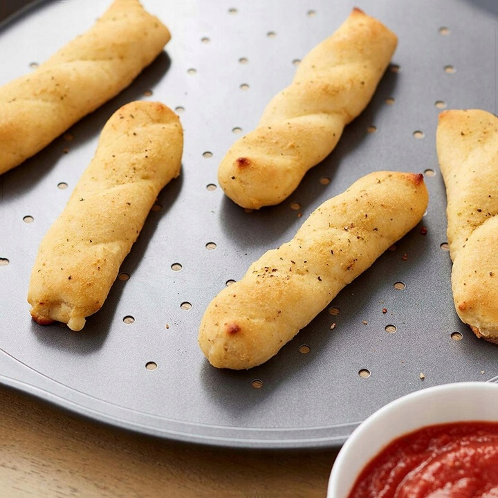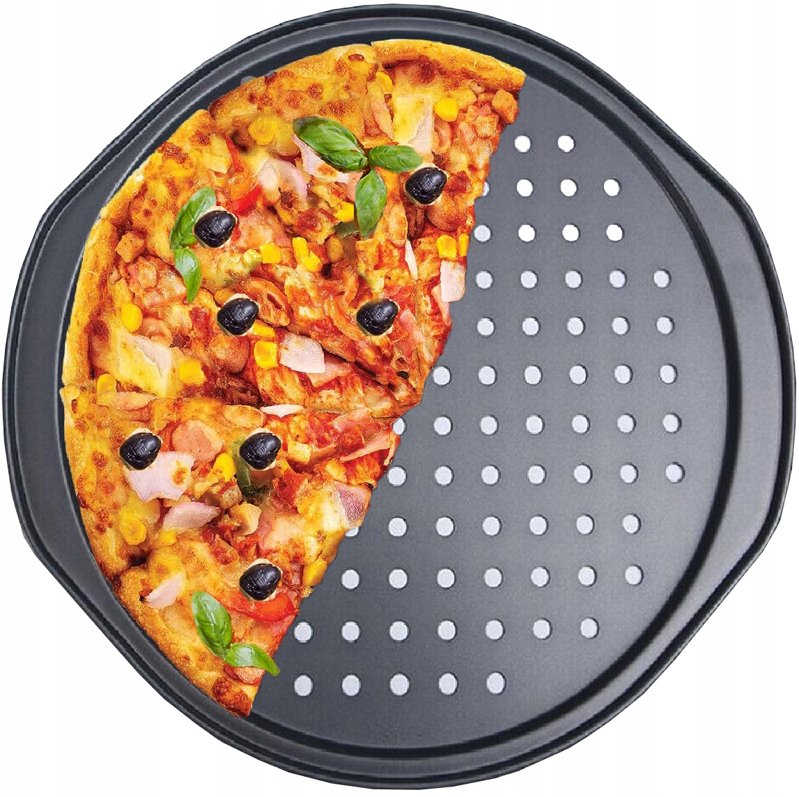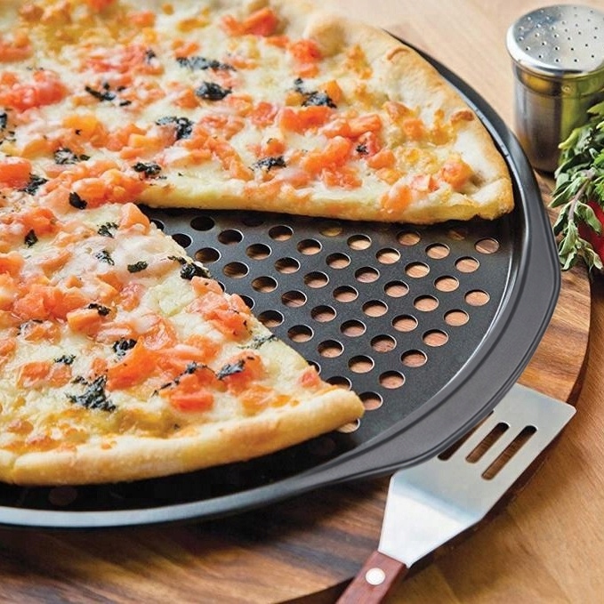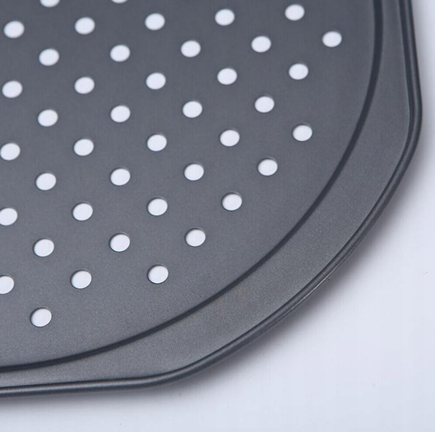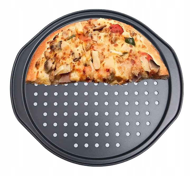 Идеальный противень для пиццы должен иметь специальные отверстия, благодаря которым тесто лучше подрумянится и весь жар уйдет остается равномерным..