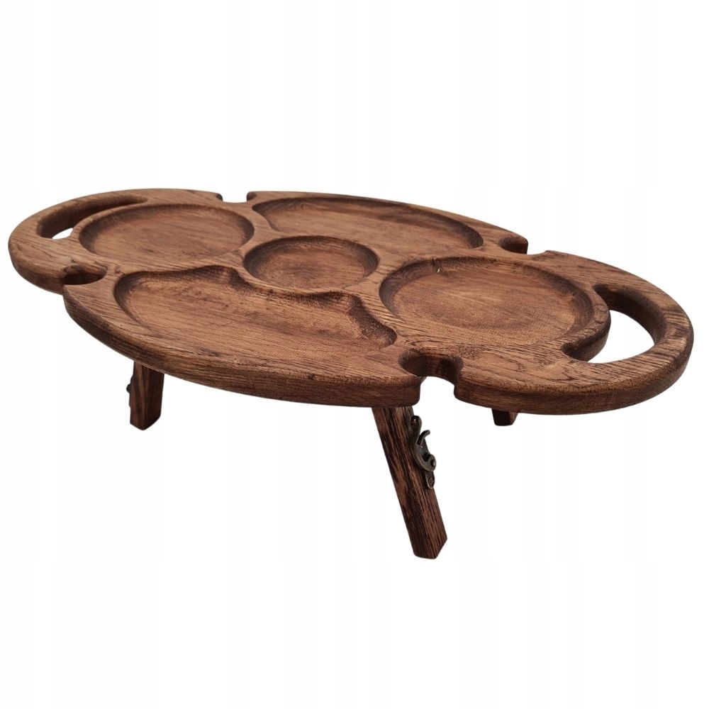 Он также отлично подойдет в качестве стола для завтрака. Изделие изготовлено вручную из древесины дуба. Представленное изделие овальной формы, для вина на 4 бокала. Ножки стола складные, что облегчает его хранение и транспортировку.