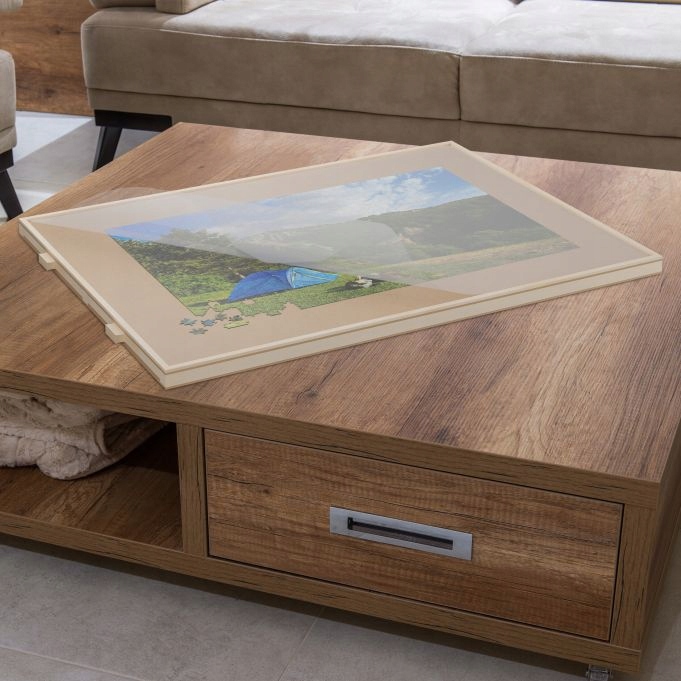 Эта доска для пазлов из соснового дерева позволяет удобно и комфортно размещать пазлы где угодно - на журнальном столике, на полу или на диване. Прочное основание обеспечивает достаточно места для пазлов из 1000 деталей, а 4 практичных ящика позволяют безопасно хранить и сортировать пазлы. Кроме того, съемная пластиковая крышка позволяет легко транспортировать пазл без риска потерять какой-либо элемент. Функция вращения доски позволяет удобно работать со всех сторон, что делает решение пазлов еще приятнее.