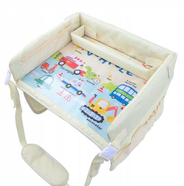 Выполнен из мягких элементов. Приподнятые стороны стола предотвращают падение предметов, находящихся на нем. Стол имеет просторные боковые карманы из эластичной сетки, в которые можно положить дополнительные аксессуары.