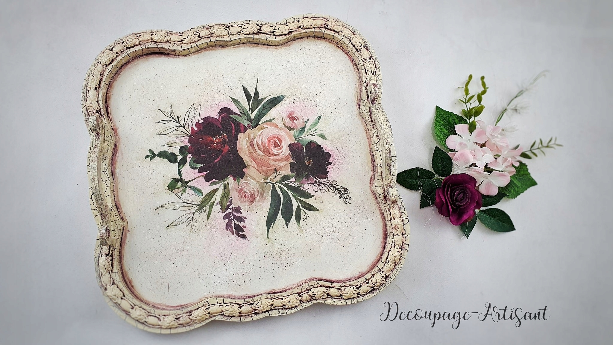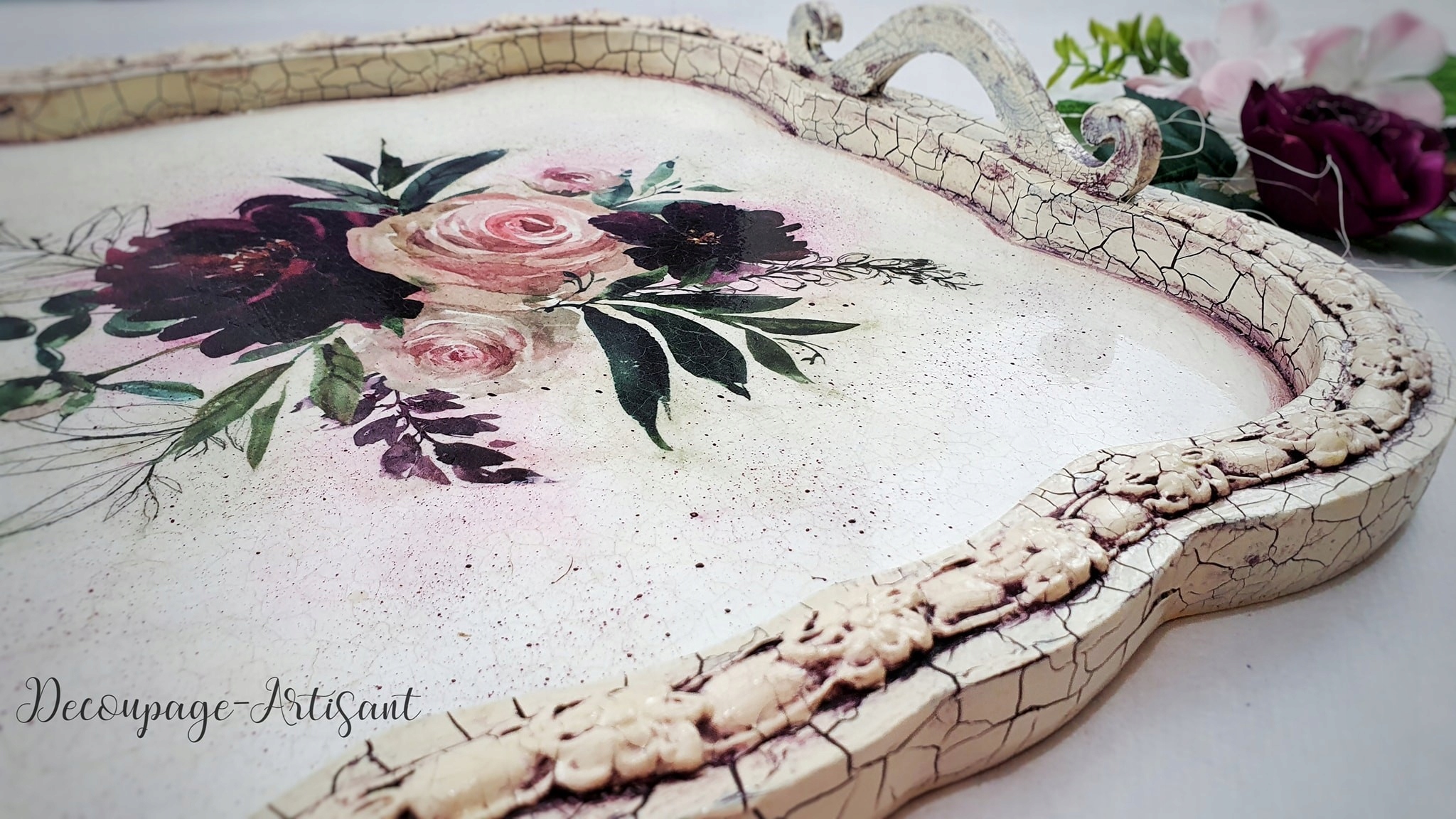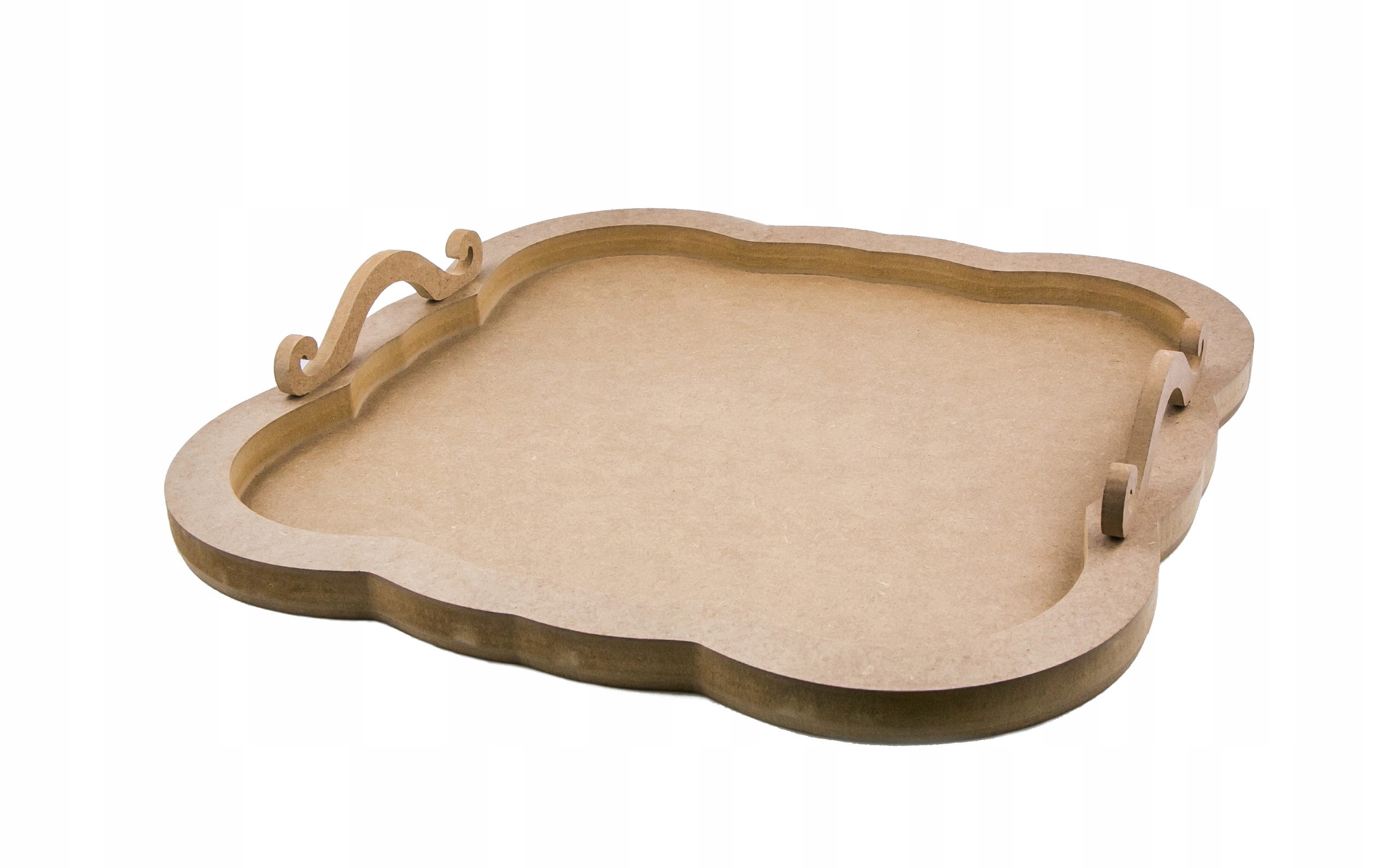 Фрезерованный поднос изготовлен из высококачественного МДФ, специально предназначенного для техники декупаж. Оснащен двумя ручками, которые легко крепятся и помещаются в подготовленные отверстия, не требуют дополнительной шлифовки. Независимо от того, какие материалы и украшения вы используете, поднос не деформируется. Чтобы сделать его еще более практичным, можно дополнительно покрыть его слоем в 100 слоев лака Cadence, устойчивого к высоким температурам. Благодаря этому поднос станет не только красивым предметом декора, но и практичным аксессуаром.