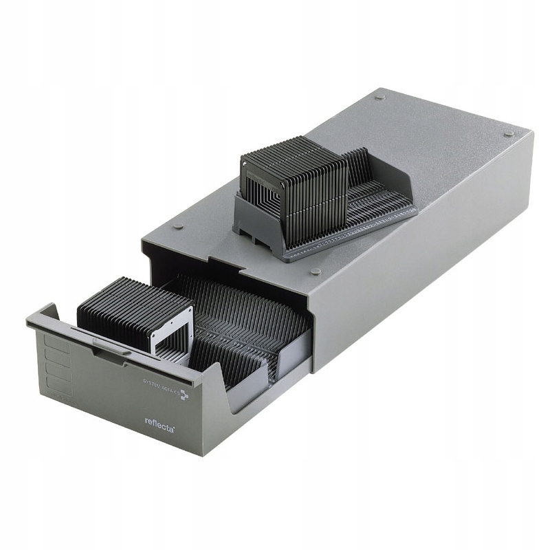 Оригинальные контейнеры CS для 40 штук диарам CS/CS2 в упаковке, в которую входит 4 штуки в архивной коробке. Этот тип стека предназначен только для фреймов CS/CS2 и проекторов, предназначенных для них. В магазине CS нет потери кадров, даже в перевернутом положении.