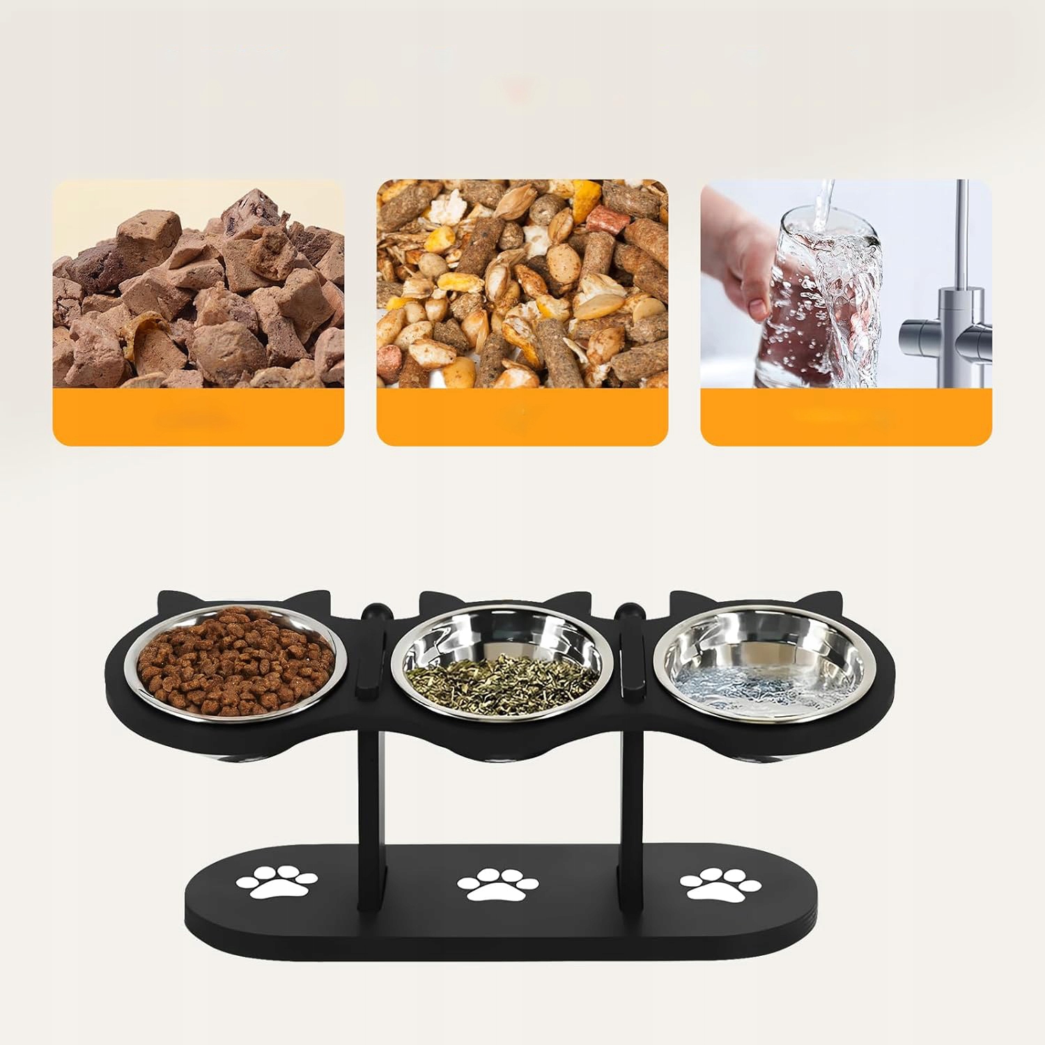 ПОДЪЕМНАЯ СТАНЦИЯ КОРМЛЕНИЯ ДЛЯ КОШЕК – 3 МИСКИ ИЗ НЕРЖАВЕЮЩЕЙ СТАЛИ