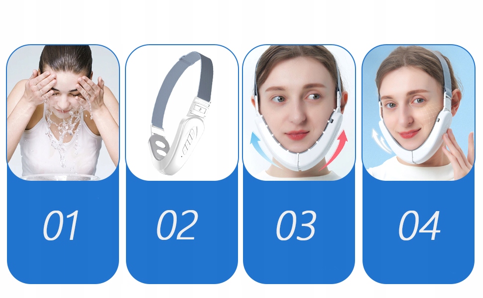 - Перед включением включения, отрегулируйте длину полосы и используйте ее, чтобы прикрепить V -образный массажер для лица в правильном положении, тщательно помассируйте мышцы челюсти и устраните отек подбородка; Принимает структуру складной дуги, а длина полосы регулируется