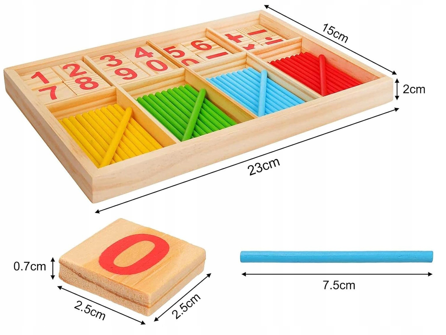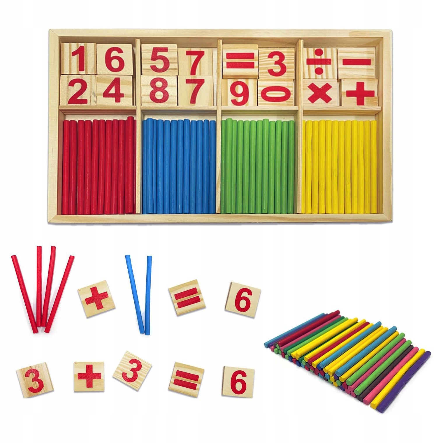 красивый и красочный набор счетных палочек, упакованный в деревянный организатор. h1>