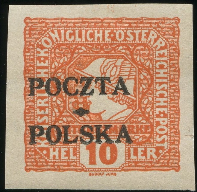 Марка с фальшивым оттиском «Poczta Polska». Состояние штампа: чистый, с подчеркиванием.