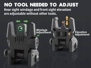Поворот механизма под мушкой для регулировки высоты прицела и получения наилучшего визуального эффекта прицеливания; поворотом ручки прицела перемещать прицельное окно влево или вправо; Когда прицел не перевернут, можно перейти непосредственно к оптоволоконному прицеливанию, чтобы быстрее перейти к прицеливанию в ближнем бою. Взяв его в руки, его можно использовать для определения потребления и дальности действия, соответствующих всем режимам на открытом воздухе.