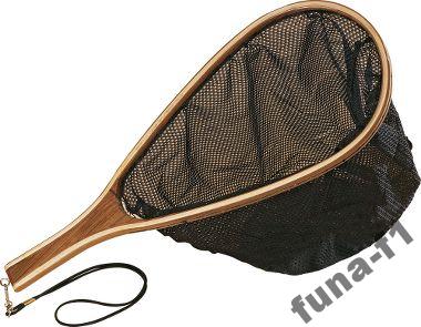 Спиннинговый и нахлыстовый подсак с короткой ручкой и жестким каркасом из дерева, для подвешивания на рыболовный жилет или крепления к ремню.