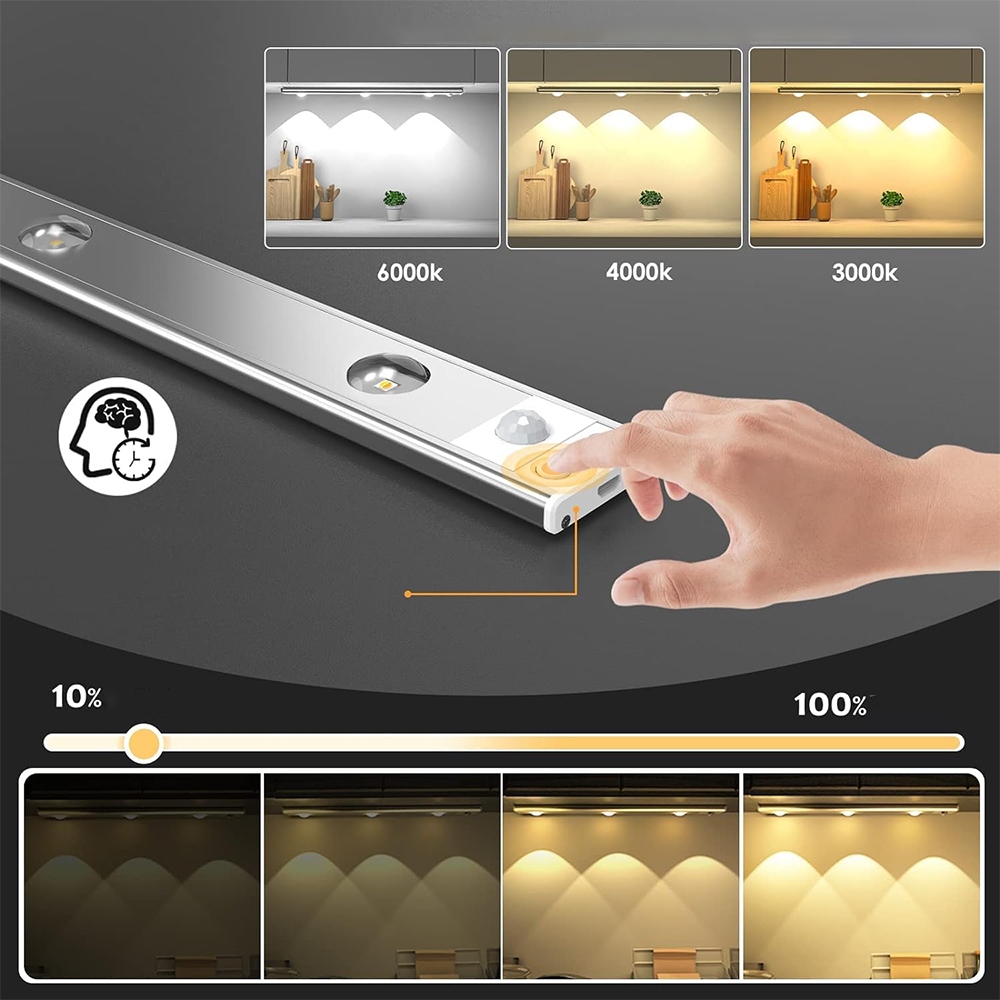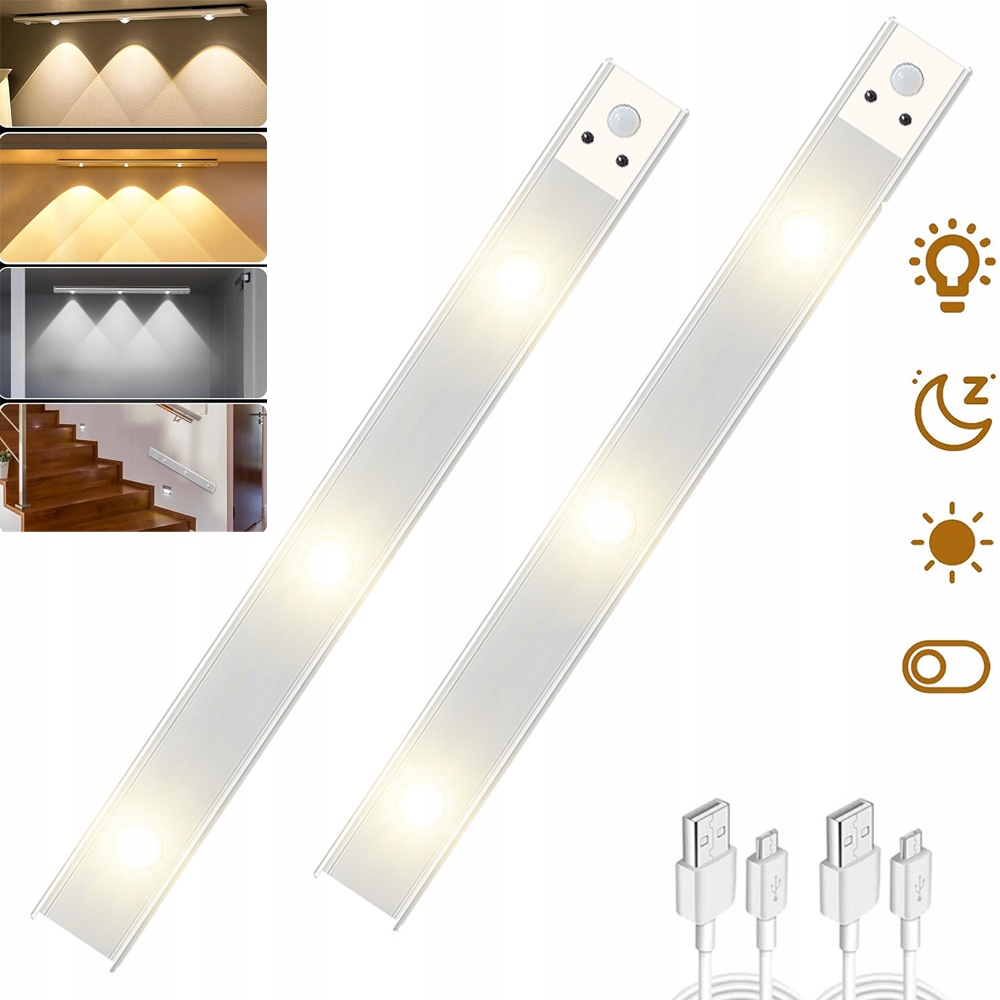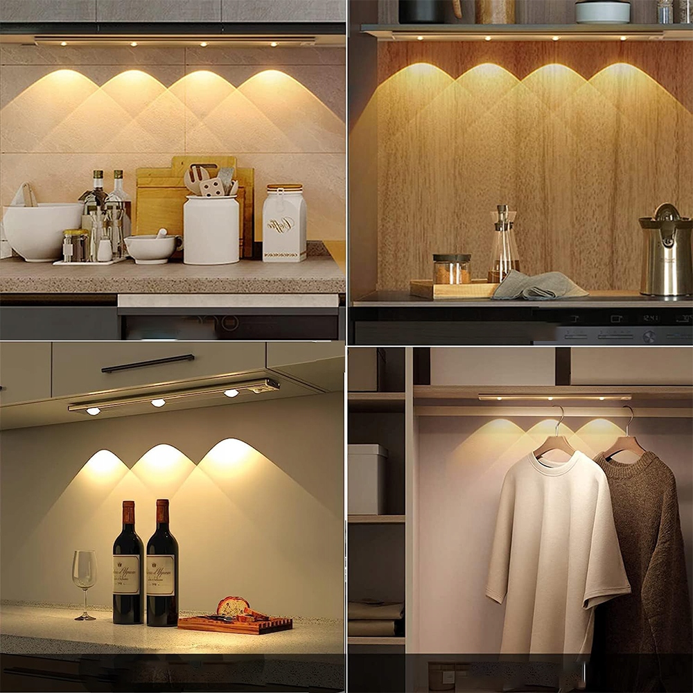 🍀🍀 Светодиодная подсветка под столешницу с датчиком движения, 750 мАч. Упаковка 2 шт., 40 см. Регулируемая подсветка шкафа, 3000 К / 4000 К / 6000 К. Освещение кухни. Светодиодная лента для шкафов и лестниц для шкафов.