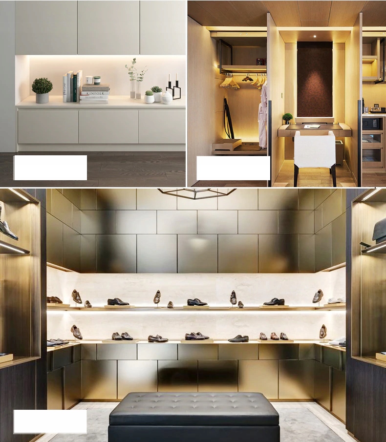 Светодиодная лента для подсветки мебели, шкафов, гардеробных и т.д. Его можно использовать в любом помещении: кухне, гостиной, спальне, гараже, подвале и многом другом. Полоска создаст потрясающую атмосферу в комнате. Отличный визуальный эффект для современного интерьера. Лента используется в качестве декоративного освещения.