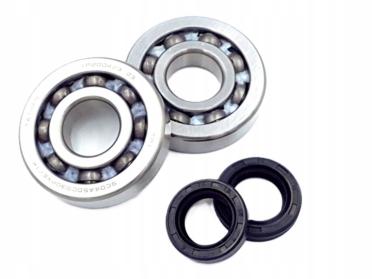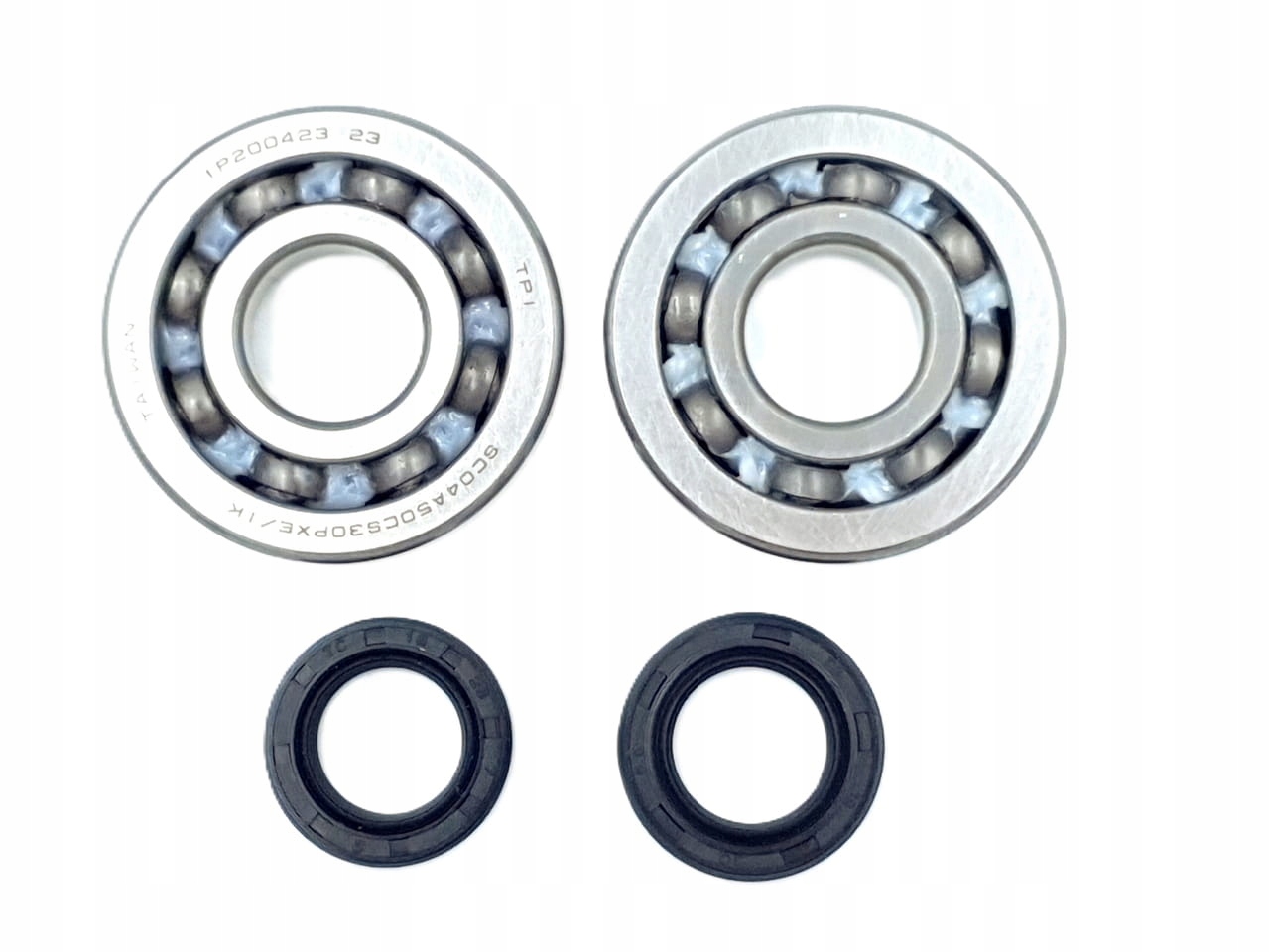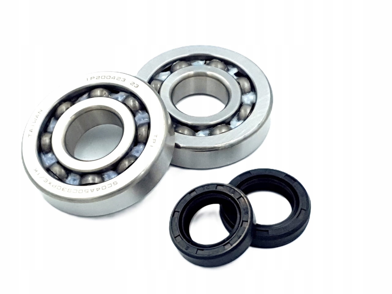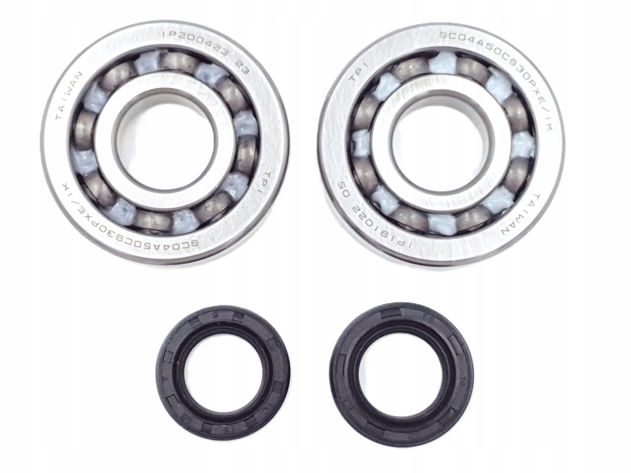 Комплект подшипников и сальников коленвала (симмеринги), предназначен для скутеров с двигателями Piaggio 50 2T. В комплект входят 2 подшипника и 2 уплотнения.